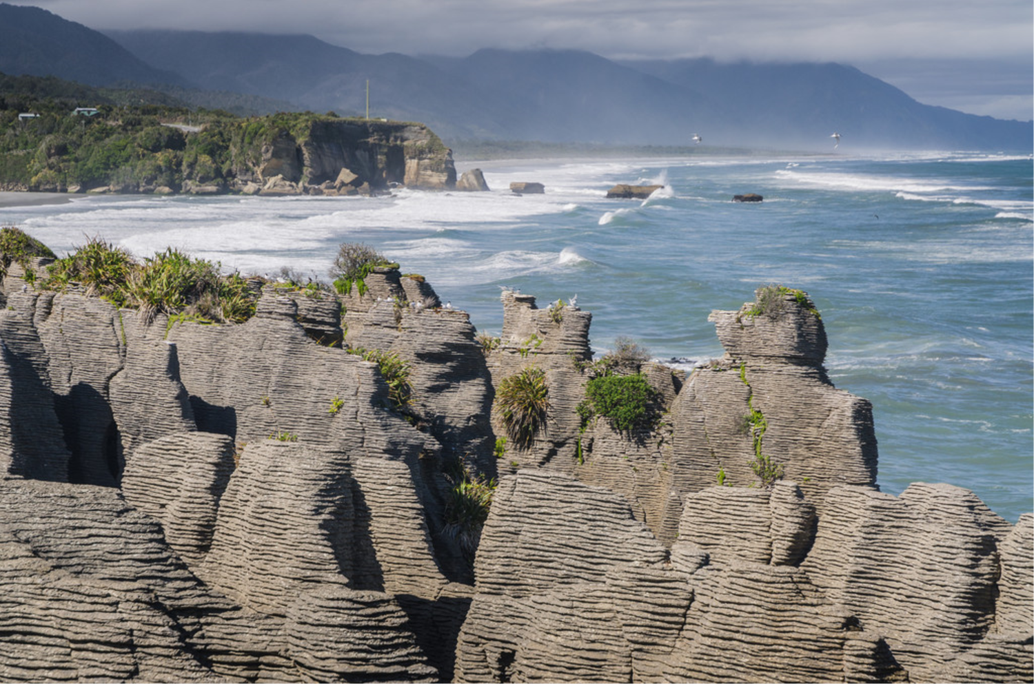 Nestled on New Zealand's west coast is a geological gem: the fascinating pancake rocks. But make no mistake, these are not delicious culinary specialties, but rather a unique geological formation in Paparoa National Park. 30 million years ago, during the Oligocene epoch, limestone sediments were deposited under water pressure. Over time, these deposits solidified, creating impressive strata of limestone alternating with more malleable layers. Following intense seismic activity in the region, the rocks emerged, undergoing sculptural erosion by water and wind. Today, these unique formations have become a must-see attraction, drawing the curious from all over the world.