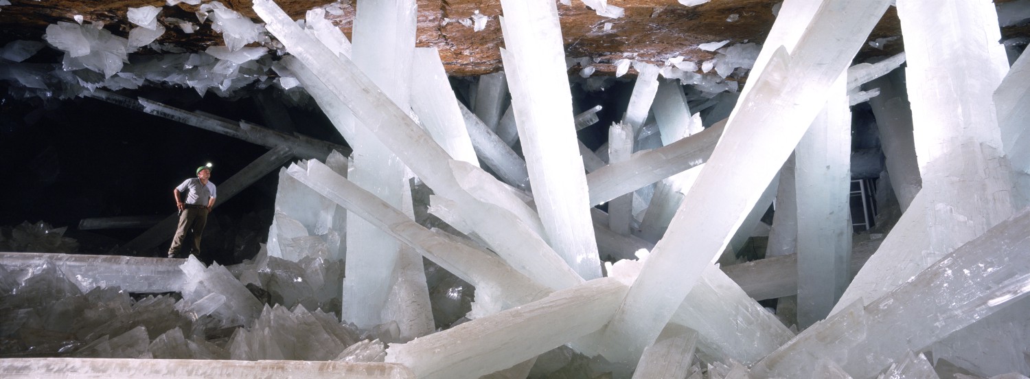On la surnomme la « Chapelle Sixtine des cristaux ». Située à 300 mètres sous terre, la caverne de cristal de la Mine de Naica, nord du Mexique (Amérique du nord), est un site géologique très surprenant. La caverne renferme des cristaux géants de sélénite, une variété de gypse transparente. Ces cristaux se sont créés sur plusieurs millénaires et forment aujourd'hui le plus grand ensemble de cristaux au monde. Le plus grand d'entre eux atteint 11,4 mètres de hauteur.