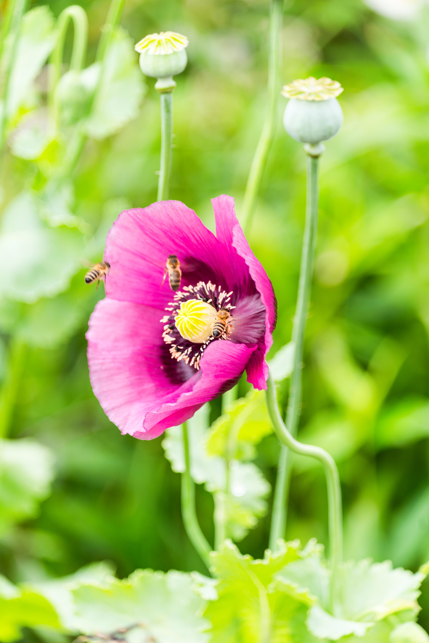 The garden of the painter Claude Monet in Giverny, in the Eure, has a wide variety of flowers that follow the seasons. Among them, the poppies (family Papaveraceae) unfurl their four pink or red petals. Their numerous stamens are loaded with nutrients that attract bees. They are native to southern Europe and North Africa. The poppy fruits contain black seeds that are rich in vitamin B1 and calcium. They are used in Central and Eastern Europe and in Alsace to decorate bread, while their subtle taste of hazelnut or toasted pine nut is also appreciated in cooking.