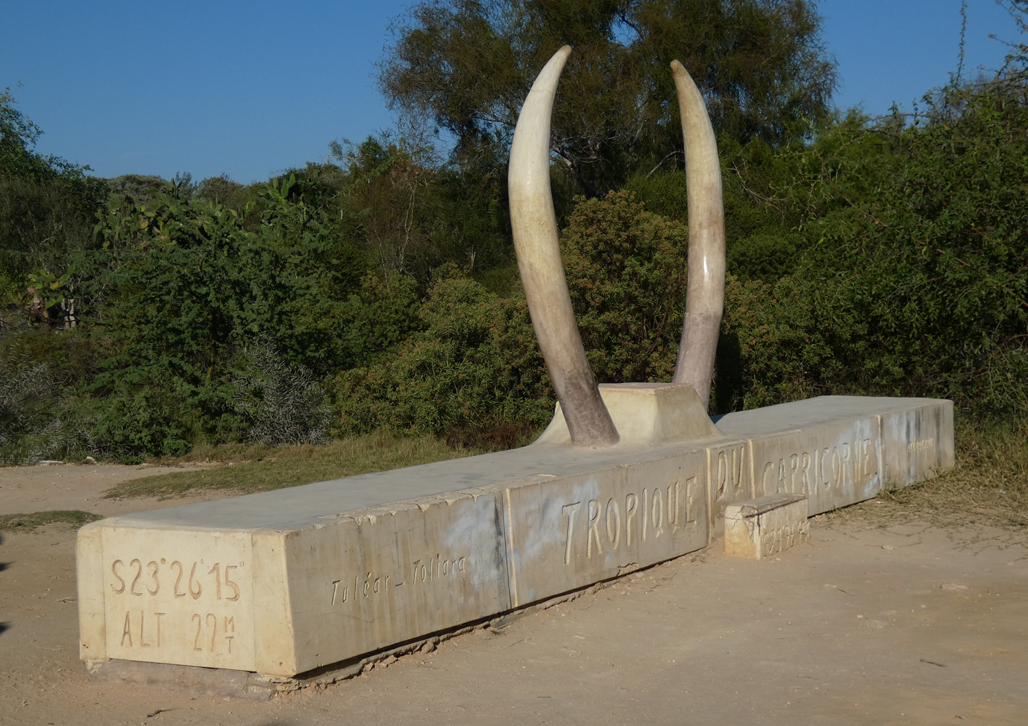 A escasos seis kilómetros de la ciudad de Toliara, muy cerca del canal de Mozambique, se alza el monumento donde se ubica la línea de tal trópico cerca de esa ciudad. Está representado por dos grandes cuernos similares a los del cebu, animal de referencia en la isla y país.