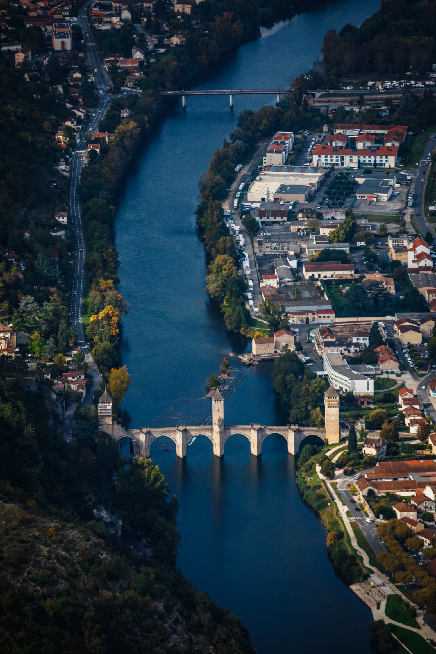 The Valentré bridge was started in 1308 but was slow to finish. In 1345, the Consuls of Cahors asked for a new architect, but the work was still dragging on. Legend says that he would have asked for the Devil's help in exchange for his soul once the work would be completed. Faced with a never-ending bridge, the furious Devil would come ripping stones every night since. Finally completed in 1378, the 564 ft (172 m) long bridge includes eight arches and three towers that culminate at 131 ft (40 m). It was restored in 1879 by Paul Gout, who added a carved stone of the Devil trying to tear one off at the top of the central tower. Listed by UNESCO on the World Heritage List under the roads of Santiago de Compostela since 1998, the Valentré bridge has been pedestrian since 1995.