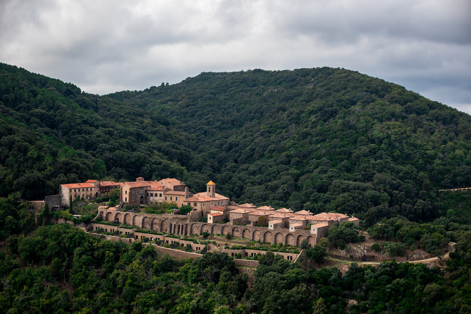 Built in the 12th century, the first Romanesque church of Notre-Dame de Clémence Monastery in the Maures Massif was consecrated on October 3, 1174. It was later destroyed by fire, rebuilt, then looted in 1416 by the lords of Bormes. The church partially collapsed in the 17th century, and the north wall, part of the bell tower, and the beginning of the semi-dome apse were all that remained of the original church.