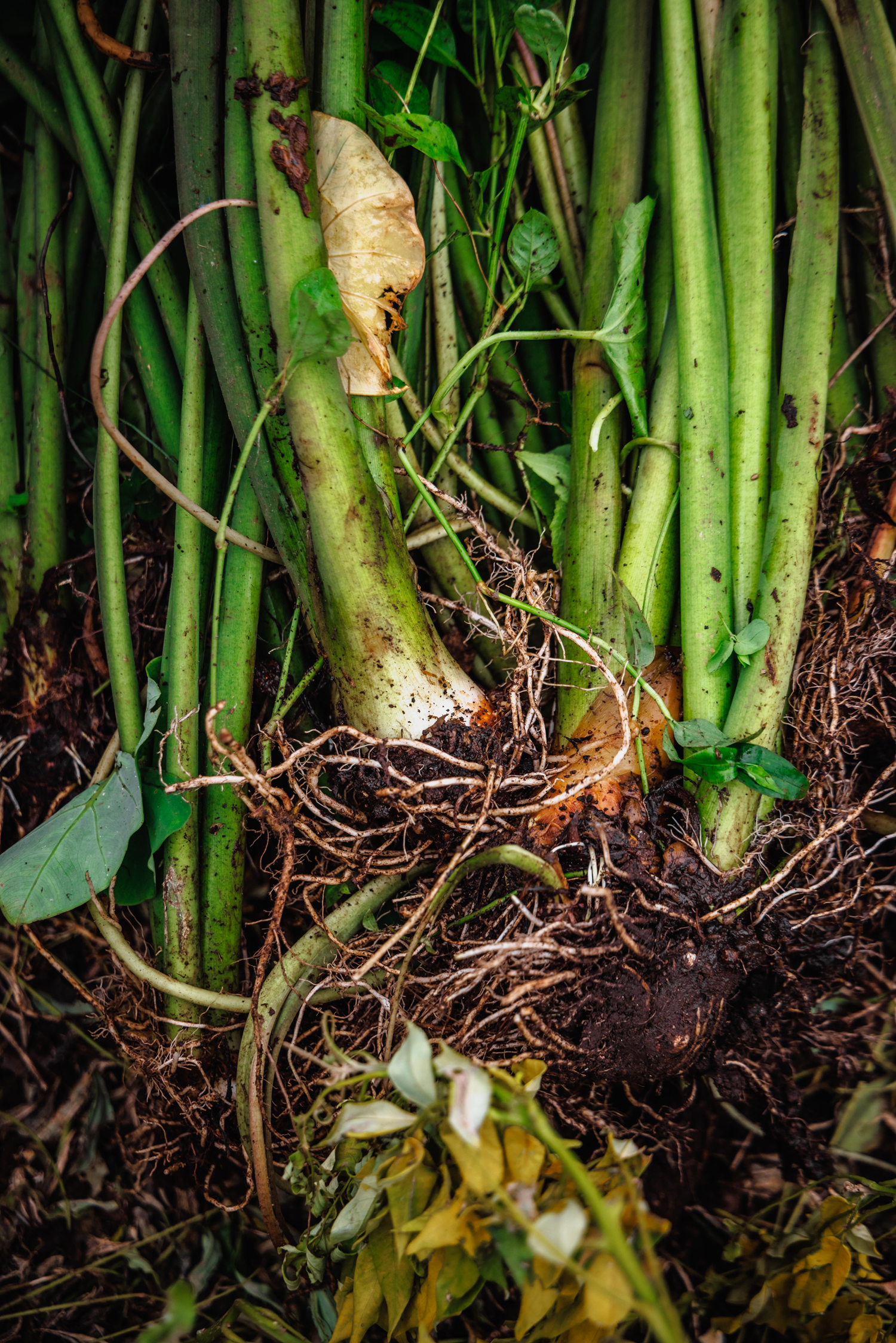 The 2010 agricultural census showed a fall in the utilized agricultural area in Martinique from 126,024 acres (51,000 ha, i.e 46 % of the territory) in 1973 to less than 61,766 acres (25,000 ha). The main productions remain banana fruit (44 % of the cultivated land) and sugar cane (18 %). They occupy the majority of the space in open field crops in the low and middle elevation areas of the island. Elsewhere, there is a bocage landscape made up of small plots. Formerly used for Creole gardens, it is today devoted to food polyculture. The traditional production of root and tuber crops (yam, dachine, cassava, sweet potato, etc.) is now overtaken by that of fresh vegetables (pumpkin, cucumber, pepper, red/green bean, turnip, cabbage, etc.).