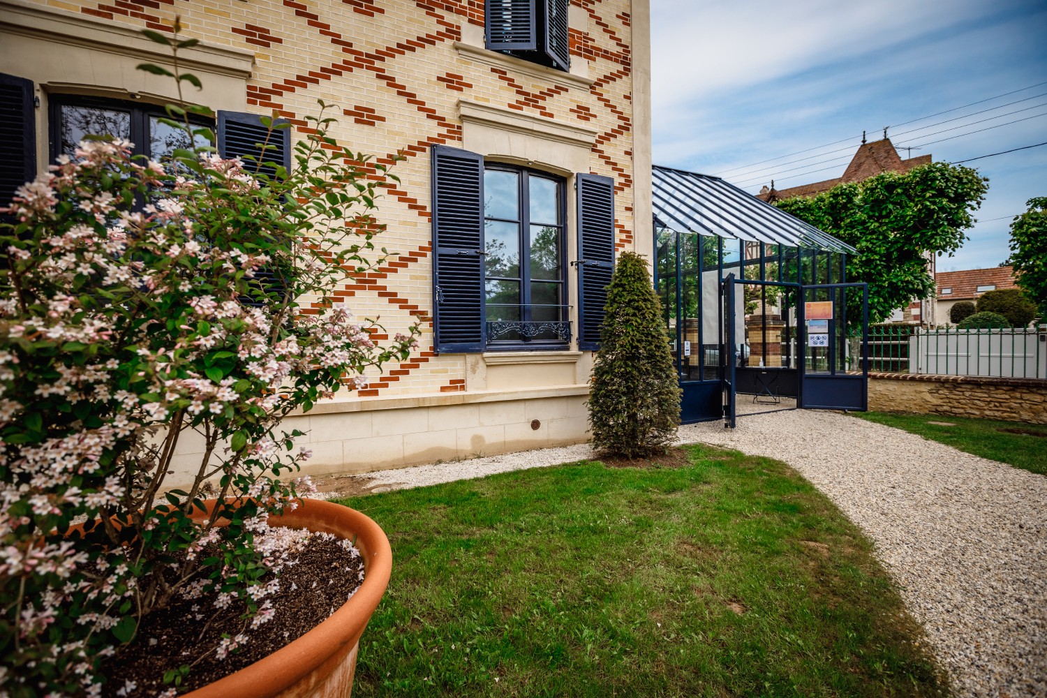 The Villa du Temps Retrouvé is easily recognizable by its facade with red and ocher hollow bricks forming a diamond-shaped lattice pattern and its stylized architecture typical of holiday houses. It is located in the Villa Bon Abri, a family home built by the architect Clément Parent in 1863 for his family. His son Louis Parent was also one of Marcel Proust's friends. The elegant Norman house located 15 Avenue du President Raymond Poincaré in the heart of the city of Cabourg has been restored from July 2019 to recreate the cultural and refined universe of the Belle Epoque. The gardens with carefully designed paths and the interior spaces have also undergone thorough restructuring.
