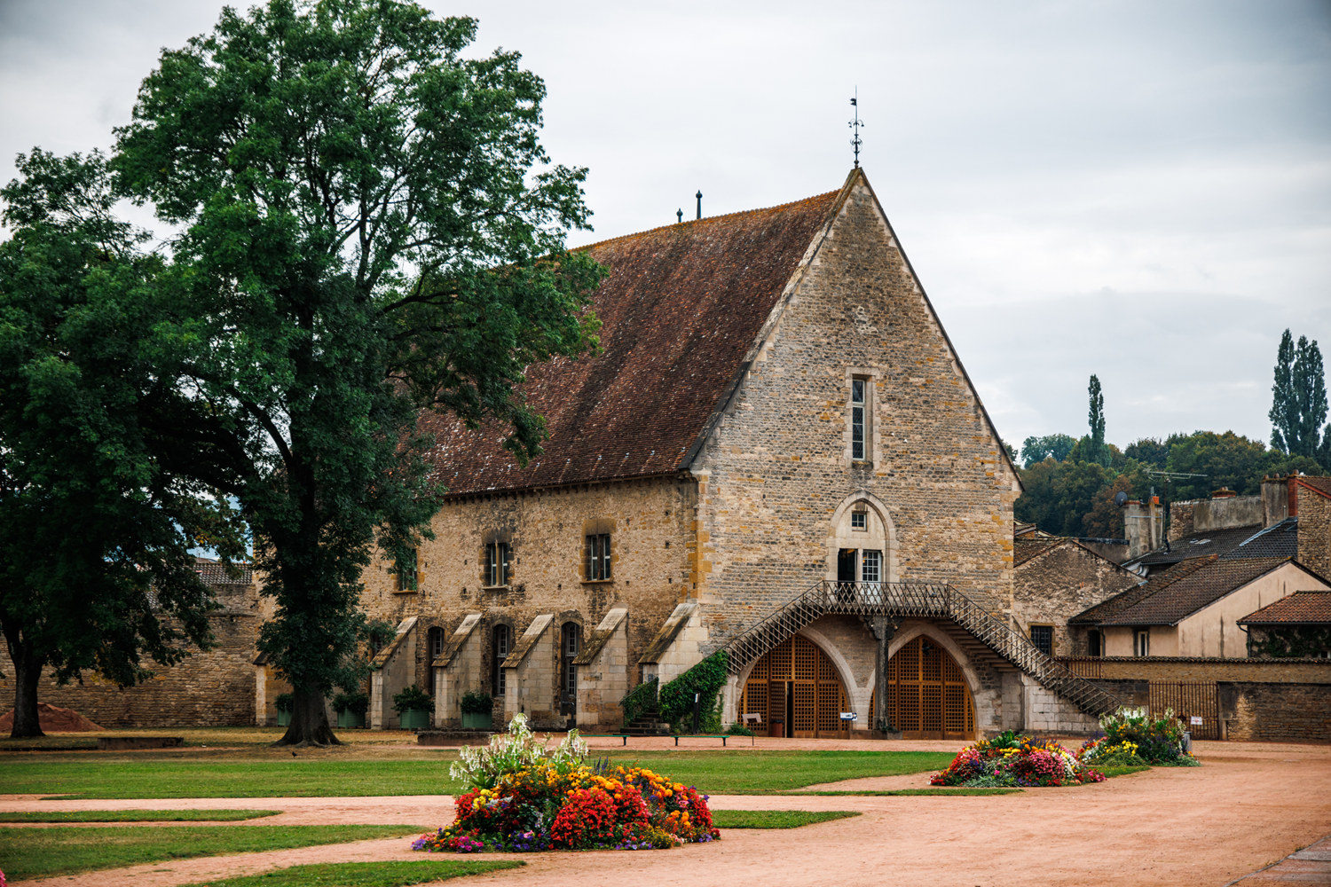 The Cluny Abbey flour building visible here houses a lapidary museum in its upper room. The eight 12th-century capitals of the roundabout of the choir of Cluny III Abbey - true glories of Cluniac Romanesque sculpture and the most important historiated in the round capitals in Burgundy - are exhibited there in a semicircle on marble columns. They represent symbolic historiated scenes such as the eight tones of Gregorian chant. Simpler foliated capitals belonging to the Musée Ochier are preserved at the back of the room as well as other ancient objects from the abbey, such as an 11th-century altar table, the ashes of Saint Hugh, columns, and fragments of the choir enclosure.