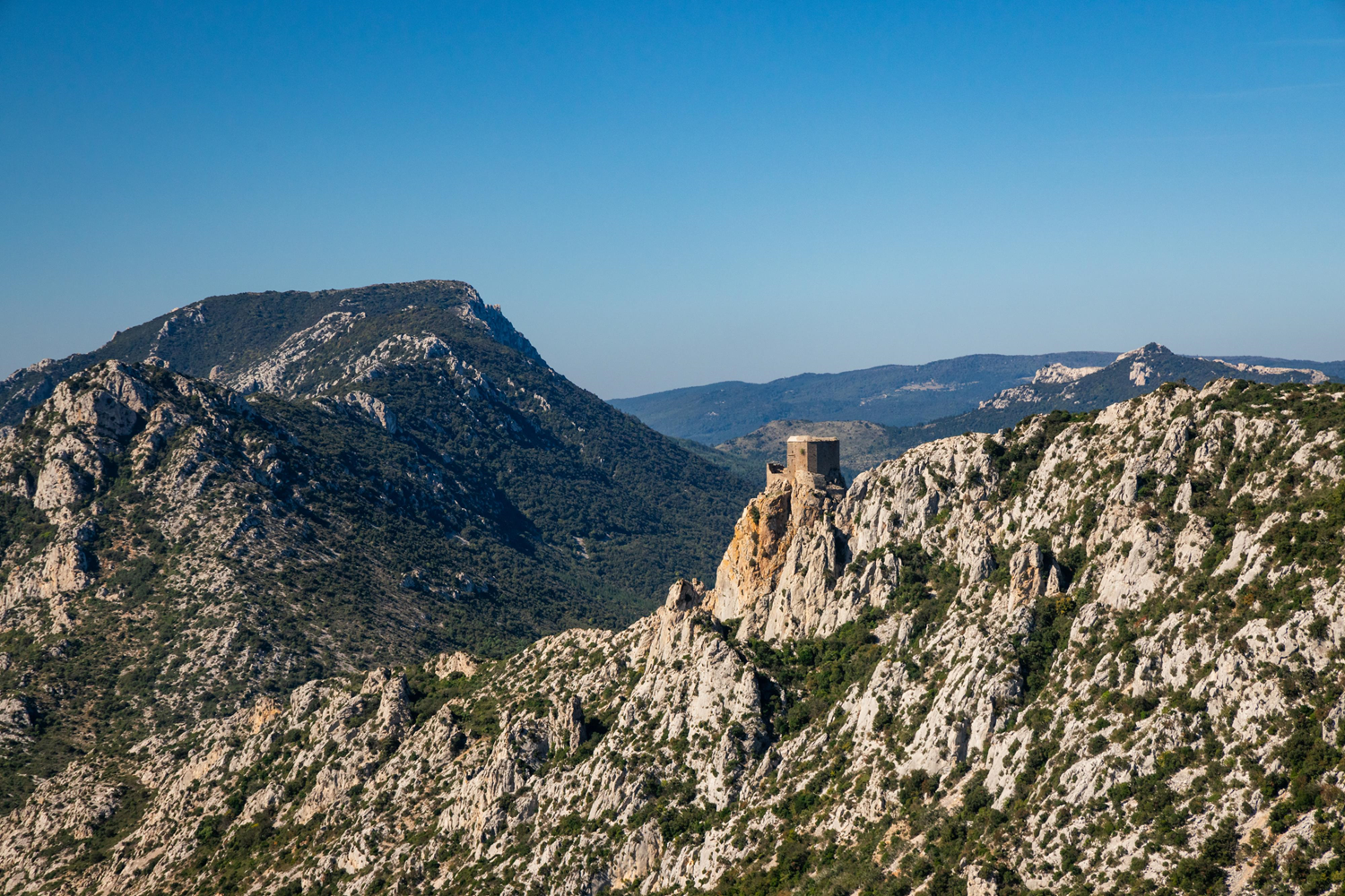 The site of Quéribus reveals the organization of a significant fortress that has been regularly modified and adapted to military requirements. Therefore, the citadel today displays elements linked to the Middle Ages entangled with fragments from the Renaissance. Access to the fortress is via a chicane staircase that leads to a real trap where three successive walls in staggered rows rise. To prevent the entry of a potential assailant, the mouths of the loopholes and gun ports open on all sides. The fortress of Quéribus served as a refuge for heretics and faydits lords (lords dispossessed for their support of the Cathars) long after the end of the Albigensian Crusade, until the capture of Chabert de Barbaira who finally agreed to surrender Quéribus in exchange for his freedom.