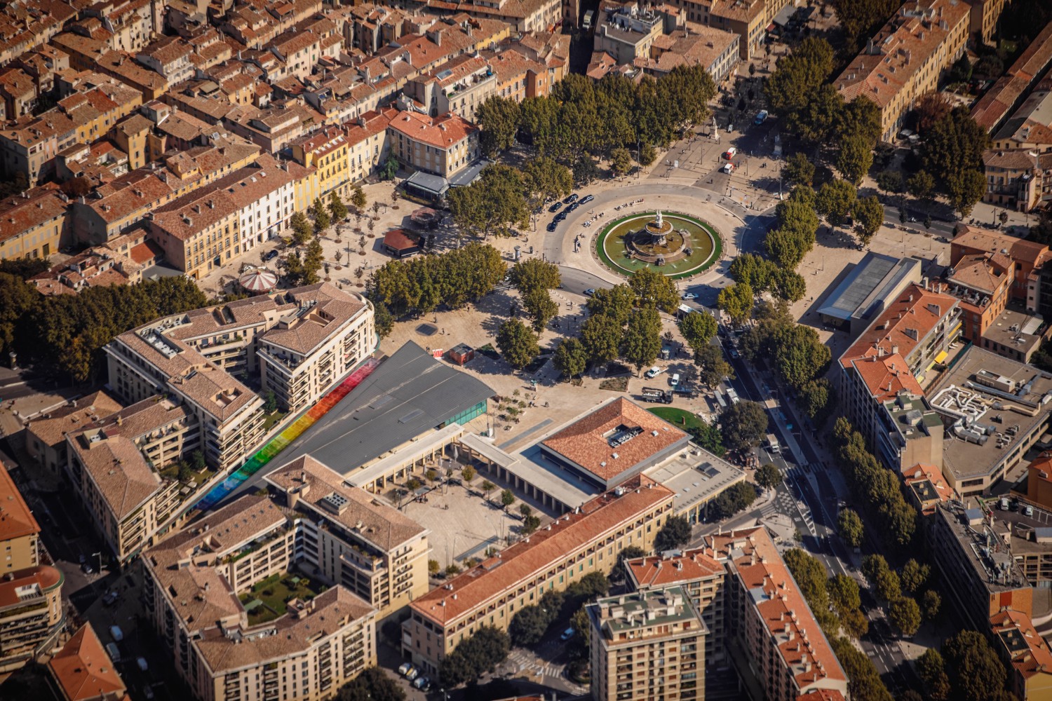 Upon its construction in 1860, the Rotonde fountain marked a turning point for Aix-en-Provence, not only by its exceptional dimensions but also by the innovation of its cast-iron basin. Back then, it symbolically stood at the entrance of the modern city freed of its ramparts by the construction of the Cours Mirabeau in the middle of the 17th century and open to the world. Since then, the historic center of Aix-en-Provence has been extended by new districts to the south and west, and the Rotonde fountain rises in the heart of the city that we know today.
