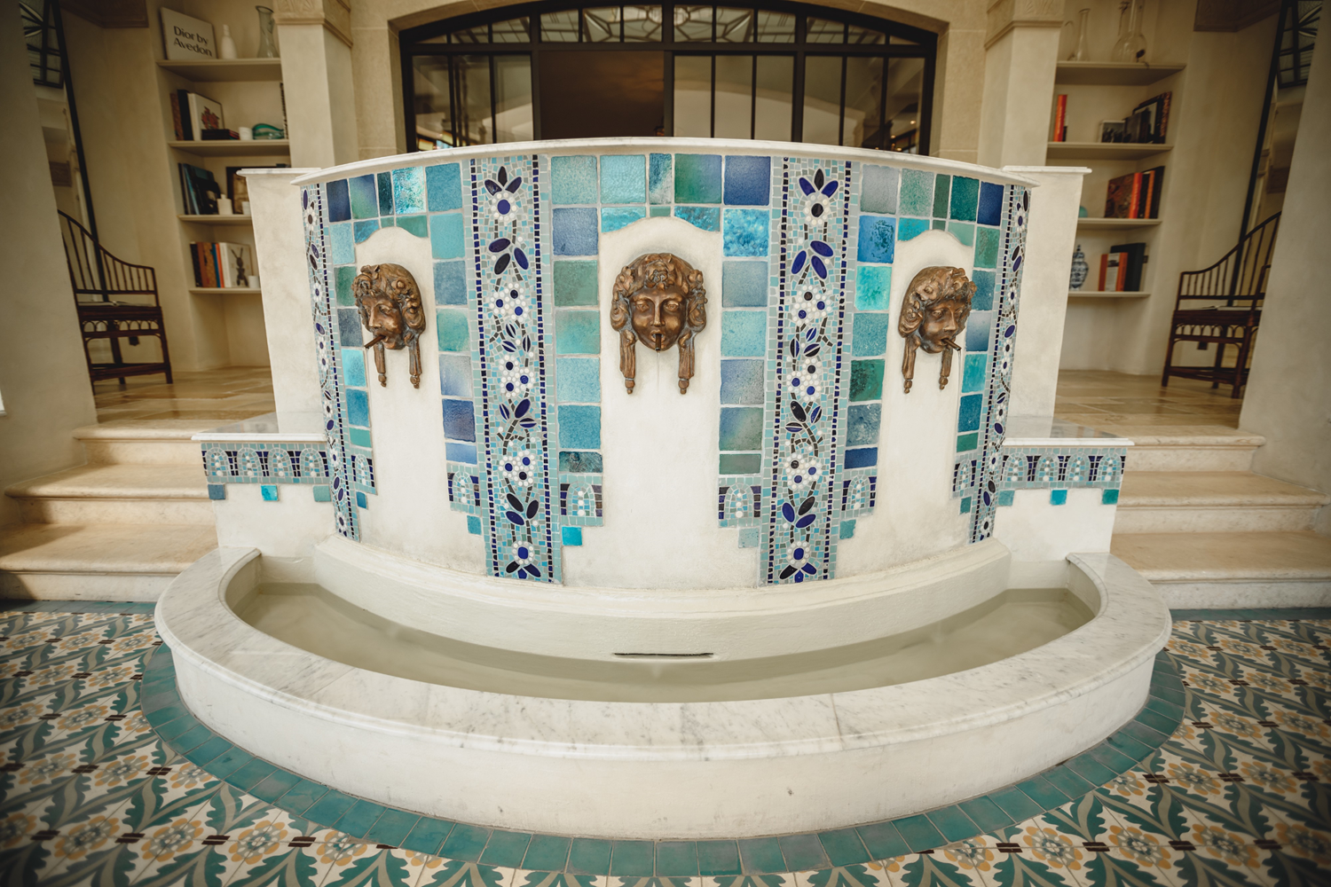 The luminous rotunda of the main building of the Fontaines Parfumées estate in Grasse in the Alpes-Maritimes department houses a fountain decorated with mosaics from which scented water flows. In 1920, in what was then one of the first perfumeries open to the public, privileged customers could come and fill their bottles at this scented fountain which has since been restored.