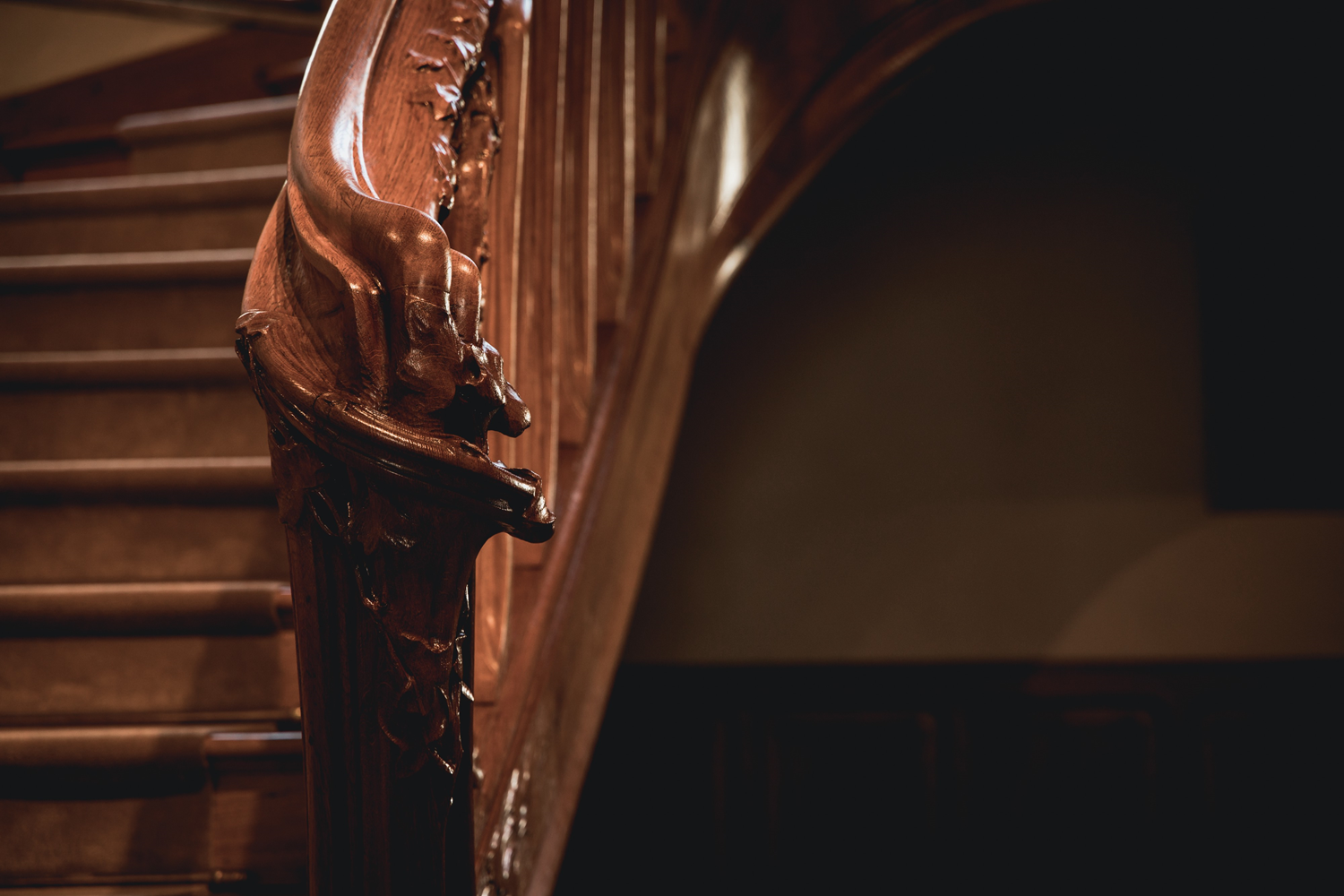 From the vestibule of the Villa Majorelle, the staircase with ivy decoration in oak wood occupies the space. It was designed by the architect Henri Sauvage and executed by Louis Majorelle. Its twisty handrail symbolizes the strength and growth of the ivy, the foliage of which diminishes as it rises. The Villa Majorelle is a global work shaped by various artists invited by Louis Majorelle to express their creativity following Art Nouveau nature patterns.