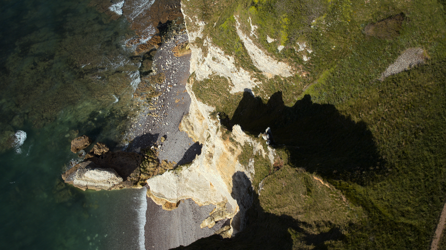 The Côte d'Albâtre (Alabaster Coast) - whose choronym designates the coastal region of the Pays de Caux bordering the English Channel - is made up of 80 miles (130 km) of coastline. It is punctuated by 98 to 393 ft (30 to 120 m) high cliffs interspersed with depressions called valleuses allowing access to the sea. High vertical and subvertical walls of limestone, these cliffs alternate layers of dark flint and yellowish marl. The name Côte d'Albâtre refers to the milky-white color that the sea can take on when the chalk they are made of begins to dissolve under the effect of maritime erosion.