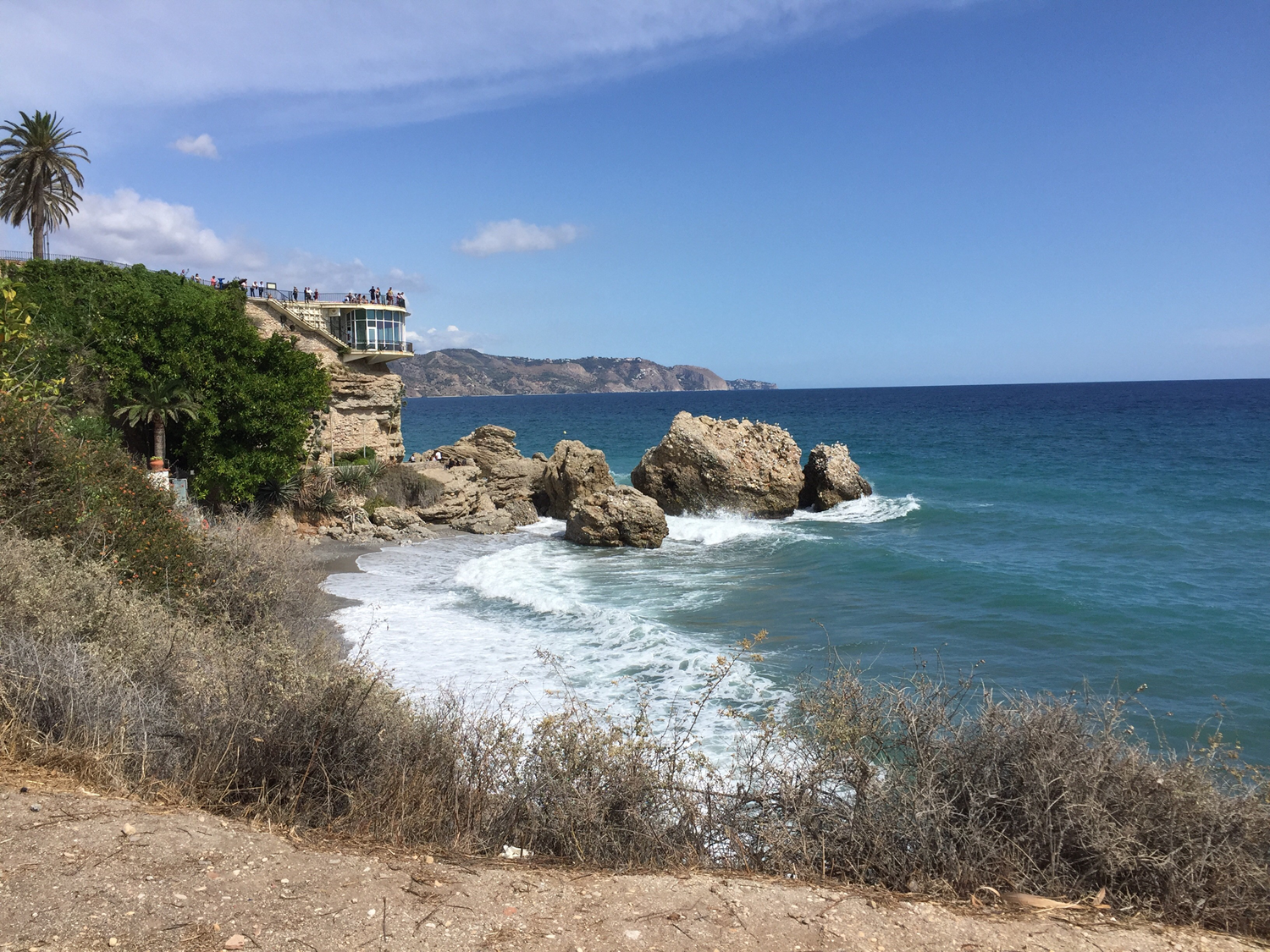 A nice view of Balcón de Europa from below in Nerja