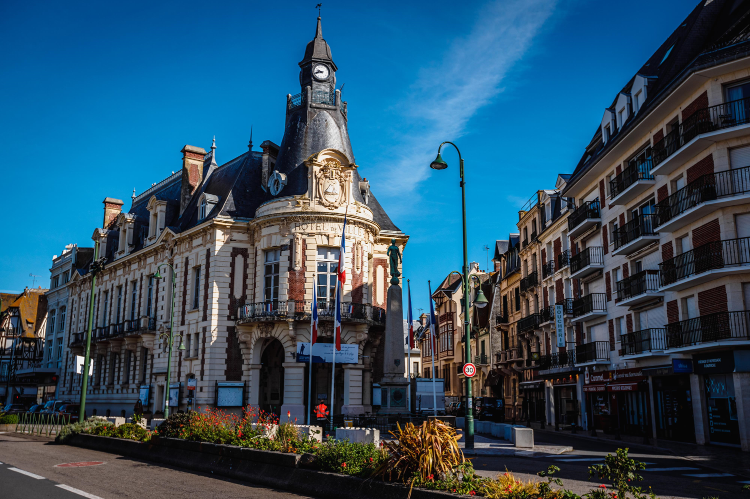 The town hall of Trouville-sur-Mer has not always stood on its current location. It was built at La Cahotte, by the sea, in 1859-1860. More than 50 years later, the fashion for seaside resorts saw a casino erected a few feet away. For the sake of aesthetics, the old town hall was razed and rebuilt in 1913 on its current site. During the two years of construction, elected officials stayed at the Hôtel Meurice.