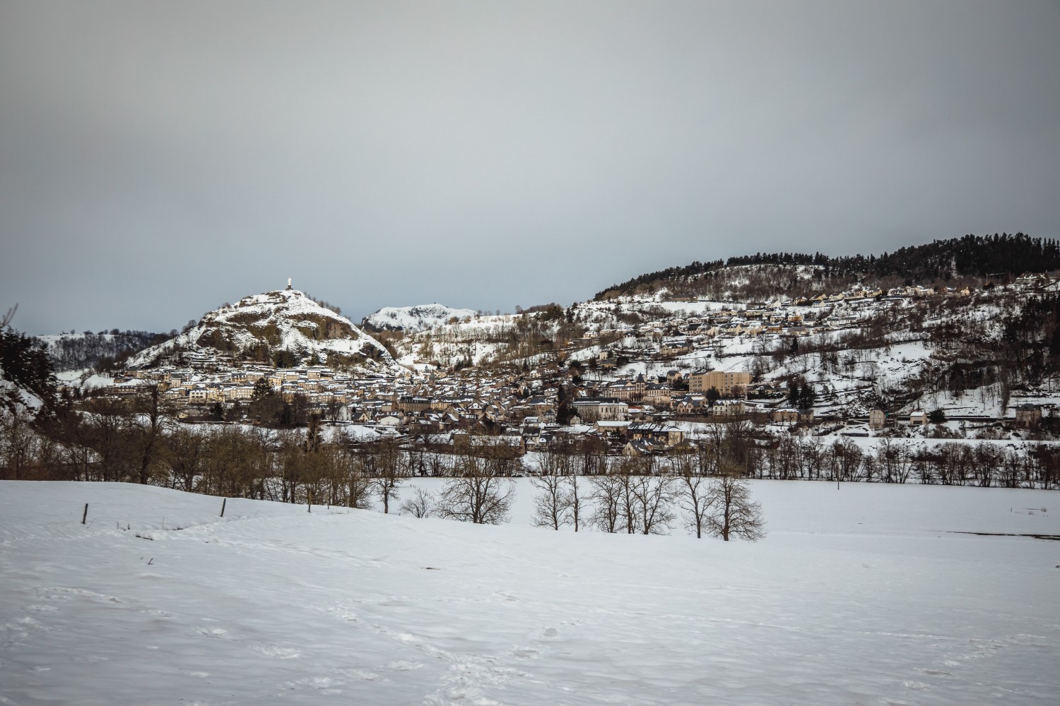 Murat, which means steep rock in Celtic, covers 12.4 square miles (20.26 km²) between 2,847 and 4,461 ft (868 and 1,360 m) of altitude. The village extends in the heart of the Monts du Cantal (Cantal Mounts), in the Auvergne Volcanoes Regional Nature Park, at the foot of the largest volcano in Europe. The municipality had only 1,855 inhabitants in 2018, but its rich heritage, its eleven listed buildings, its favorable environment, and its festivals attract numerous visitors in summer and winter.