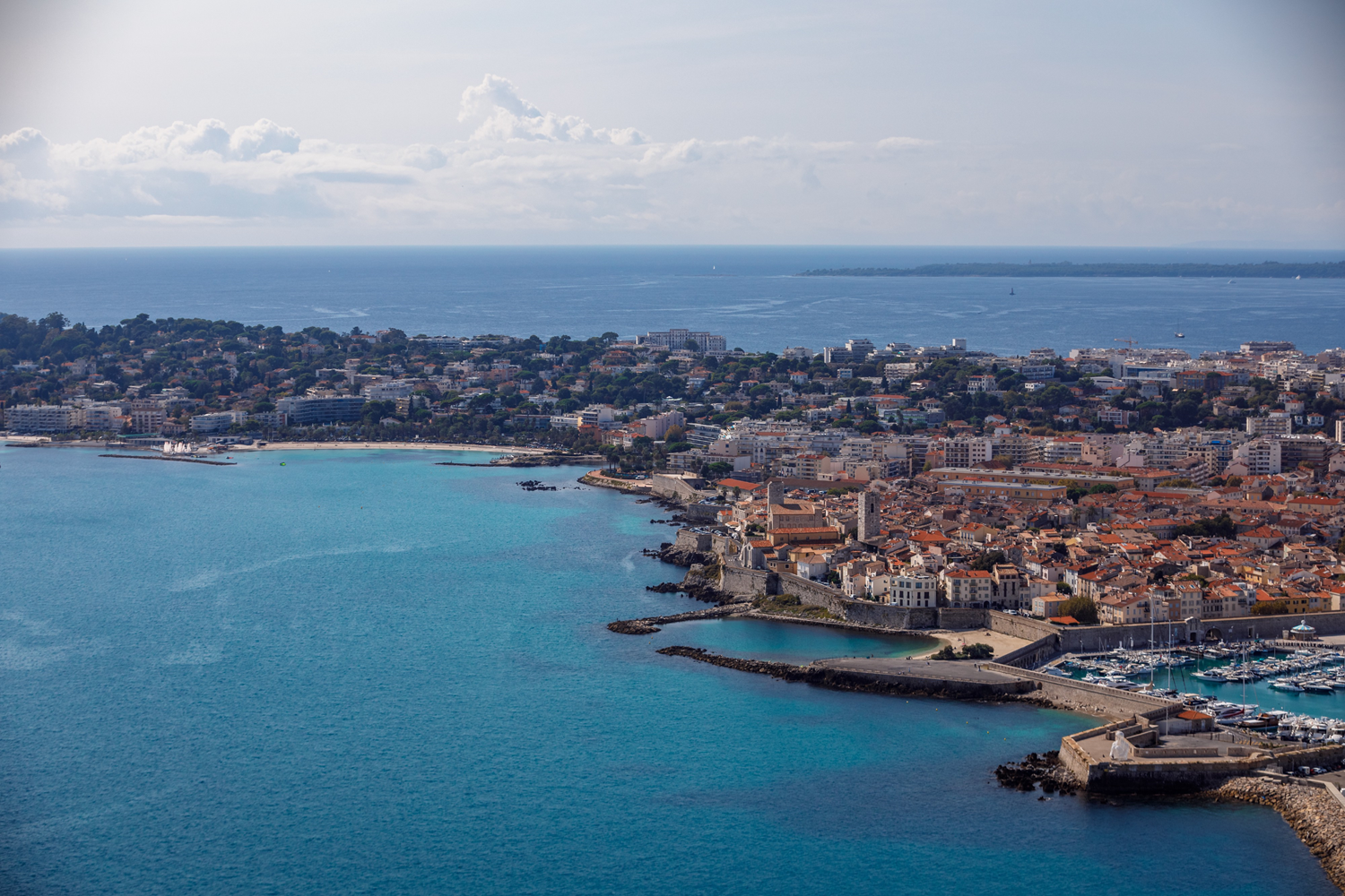The seafront of Antibes opens onto the Baie des Anges to the east and extends to Cap d'Antibes, a Natura 2000 listed site, to the north. Over 14.2 miles (23 km), the town's coast offers several sandy beaches with Garoupe, Gravette, nestled at the foot of the ramparts, La Salis, and Le Ponteil. Antibes also has a long pebble beach that stretches from Fort Carré to Villeneuve-Loubet. The seaside resort of Juan-les-Pins, located opposite the Lérins Islands, is administratively attached to Antibes.