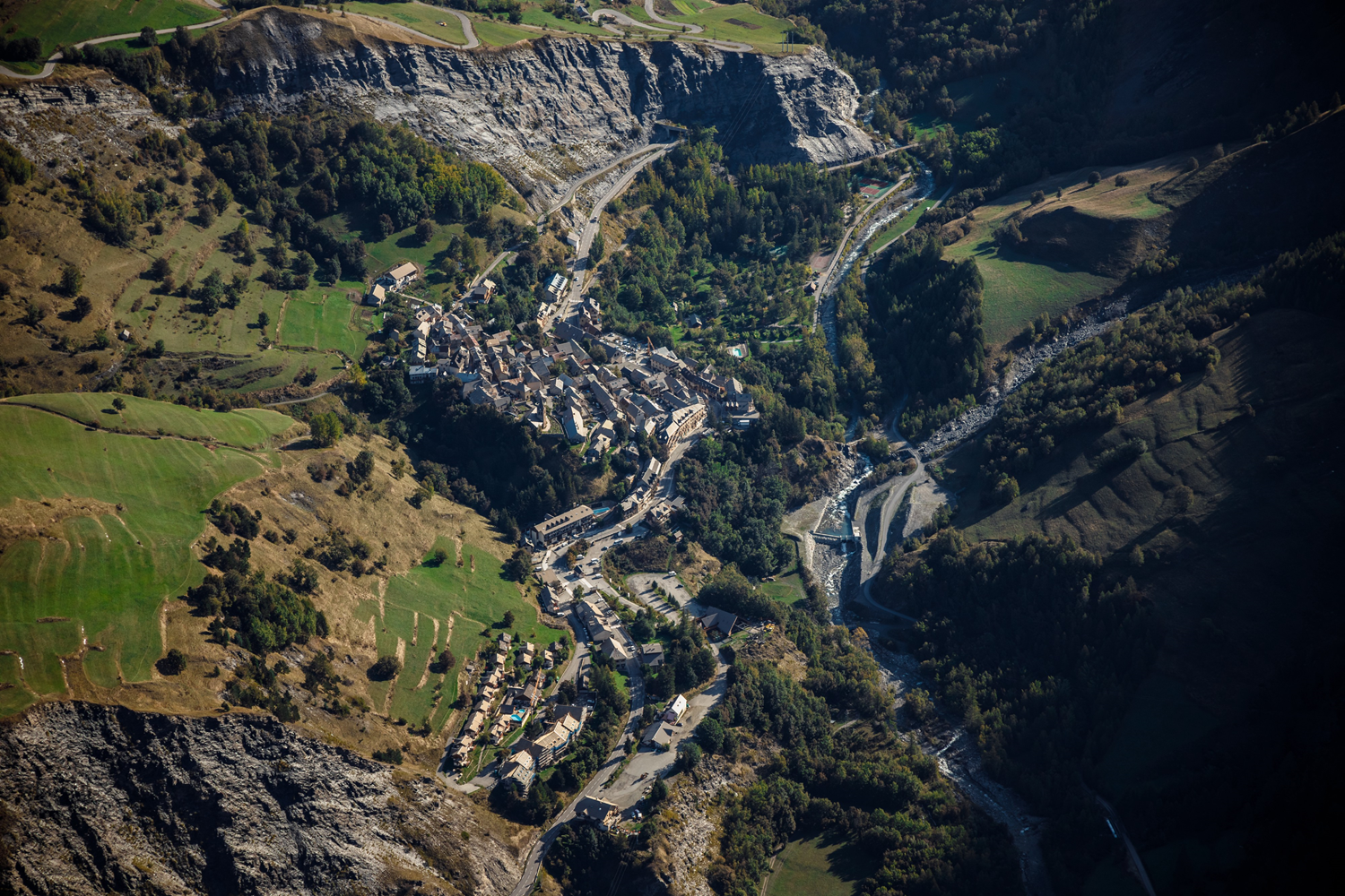 The village-resort of La Grave (Hautes-Alpes) extends on the right bank of the Romanche upper valley. This 48.6 mi (78.3 km) long river has its source in the locality of Villar-d'Arêne at an altitude of 6,561 ft (2,000 m) and meets with the Drac between the towns of Champ-sur-Drac and Varces-Allières-et-Risset at 843 ft (257 m) above sea level. It first crosses La Grave in the Écrins National Park then the municipalities of Bourg-d'Oisans, Livet-et-Gavet, Vizille, and Champ-sur-Drac in the Isère department. Its valley, traversed by a departmental road, provides access to the Lautaret pass and joins the Guisane valley and Briançon from Grenoble.