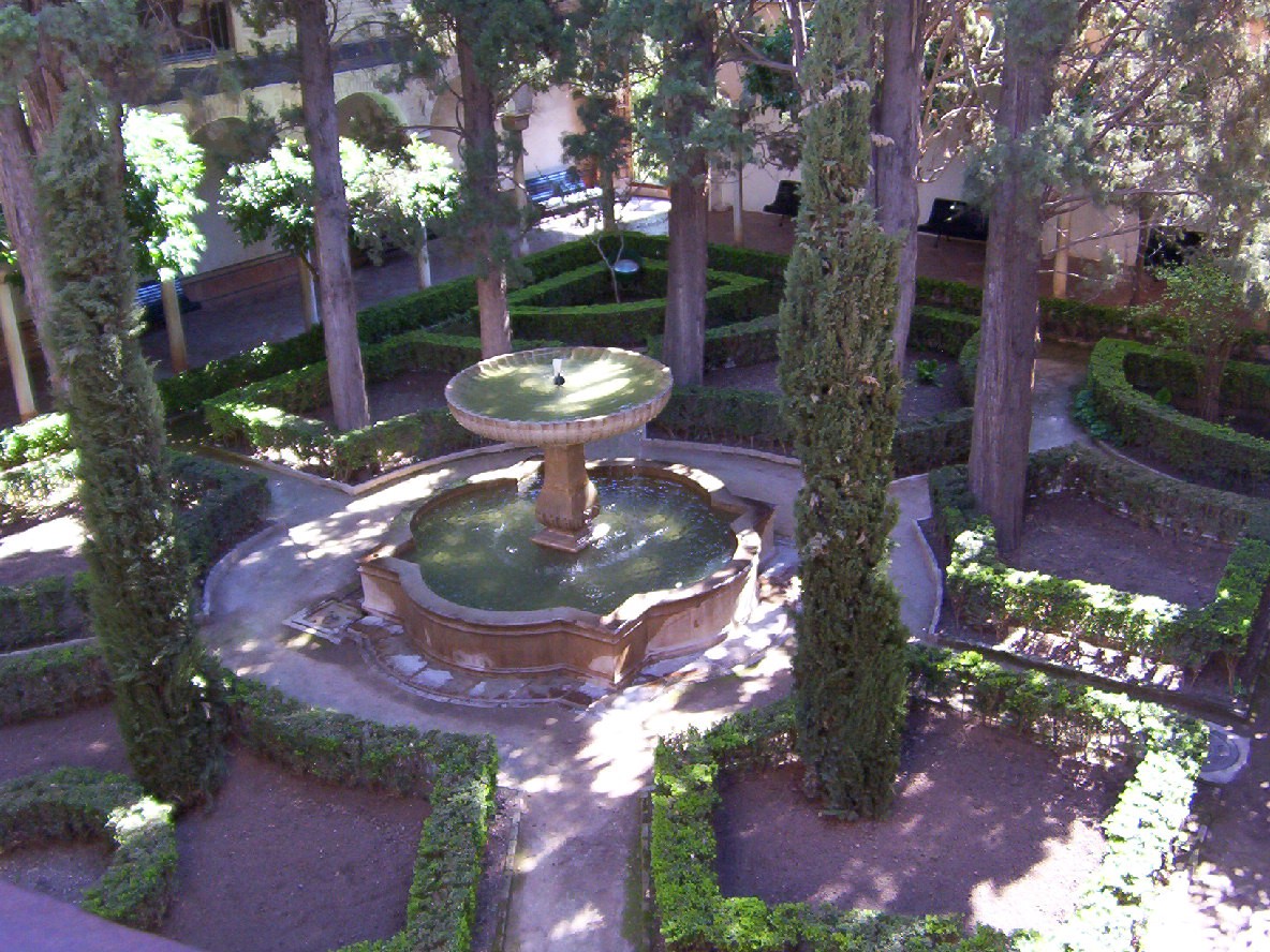 La Cour de la Lindaraja est un jardin avec une atmosphère sombre et austère. L'ensemble asymétrique des cyprès et d'autres arbres qui dominent la cour, sur les portiques et la fontaine, constituent un tamis pour la lumière.