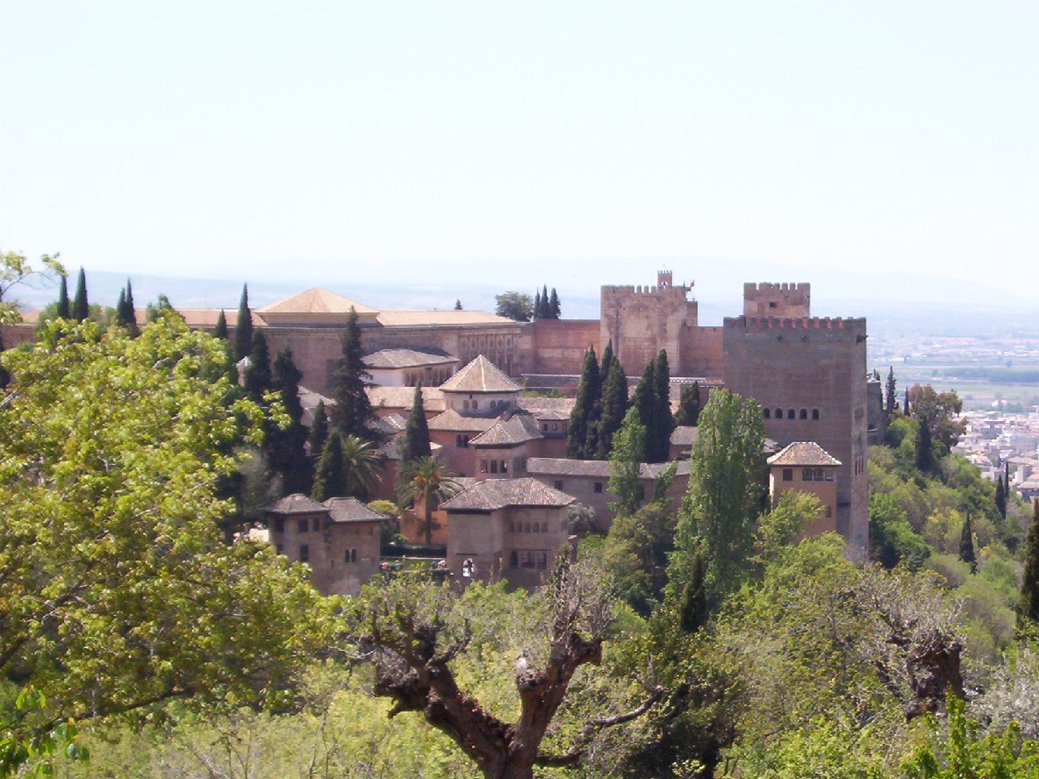 L'Alhambra un ensemble fortifié situé sur la colline de la Sabika, qui domine la plaine et la ville de Grenade, et qui fait face au quartier populaire et pittoresque de l'Albaicin. Parmi ces bâtiments se trouvent notamment le palais mauresque qui fait la gloire de l'Alhambra ainsi que le palais de style renaissance de Charles Quint.