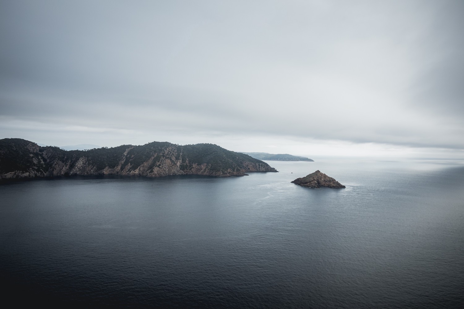 The islands of Port-Cros and Le Levant (background) constitute two of the main members of Hyères Archipelago. It consists of four principal islands, the three Golden Islands (Port-Cros, Bagaud, Le Levant) and Porquerolles. The archipelago also comprises a dozen islets, including the rock of Gabinière south of Port-Cros, and covers a total area of 18 sqm (29 km²) over 13.6 miles (22 km) from west to east.