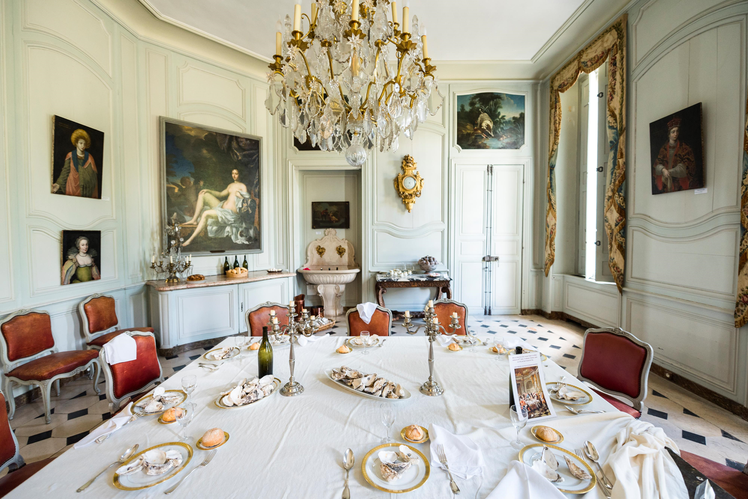Following the principles of 18th-century architecture, all the rooms of the Château de Villarceaux are in a row. On the ground floor, next to the large vestibule, the dining room is a “modern” room for its time. It contains a series of 16th-century paintings, some of which come from the Ninon de Lenclos tower below. On the left wall, a nude of Françoise Scarron, future Marquise de Maintenon and secret second wife of Louis XIV, painted in the 17th century by Louis de Mornay, Marquis de Villarceaux, who wished to seduce her. This very famous and daring painting for its time was especially embarrassing for Scarron’s wife.