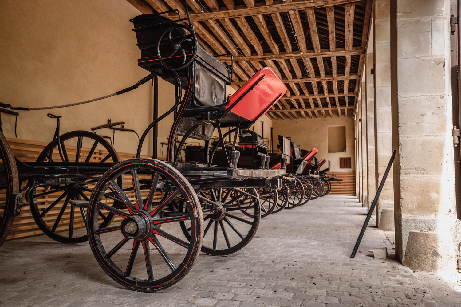 The ‘Haras National du Pin’ (farm stud), a heritage treasure of the Normandy region, has an exceptional collection of horse-drawn carriages. A large part of these vehicles is protected as historical monuments. The guided tour of the stud allows visitors to discover the collection, witness a 19th-century art of living and its customs. Horse-drawn carriages like those exhibited at the Royal Stud are remarkable for the quality and luxury of their materials, their extraordinary dimensions, and the splendor of their decor.