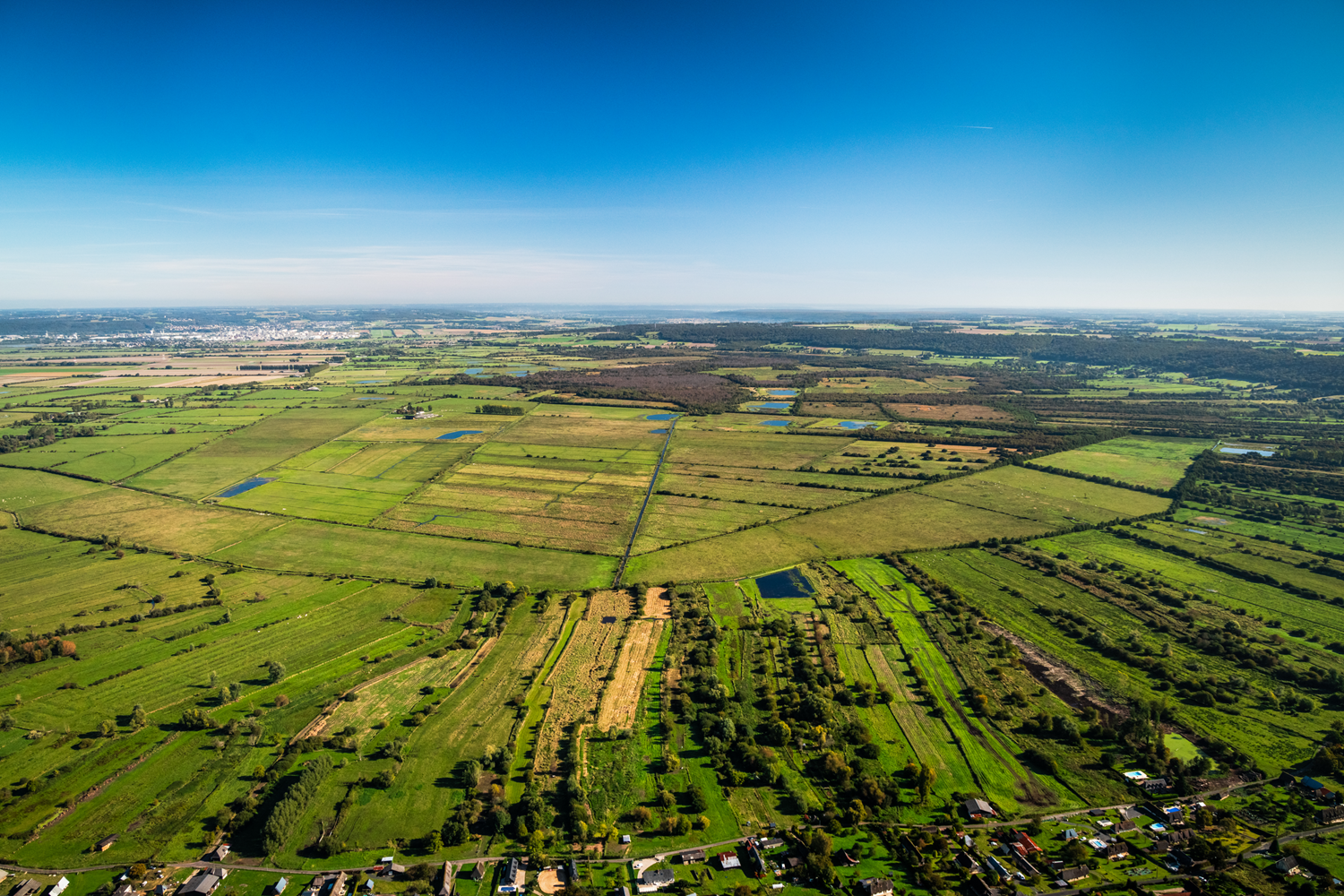 The plains of the Marais Vernier extend over 12,355 acres (5,000 ha) on the Roumois plateau, between Quillebeuf and the tip of La Roque. It is an old abandoned meander of the Seine where significant biodiversity has developed. Strips perpendicular to the slope alternate with orchards, holly hedges, and wet meadows interspersed with tadpole willows (topped tree in the shape of a large head).