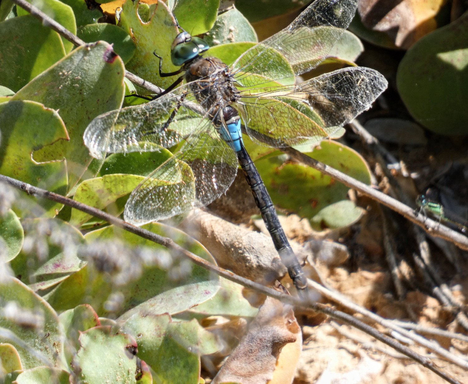 Anax phartenope. Habitual por España pero también es cierto que es más común este odonato por Levante. Se parece a la Imperator, pero se diferencia en que el segundo y tercer segmento abdominal son de color azul. Es una patrullera incansable, parecen no detenerse deambulando en busca de presas. Es una libélula grande, de hasta 7,9 cm. Se alimenta de la ingesta de mosquitos, de ahí el hecho de que sea un insecto muy beneficioso.