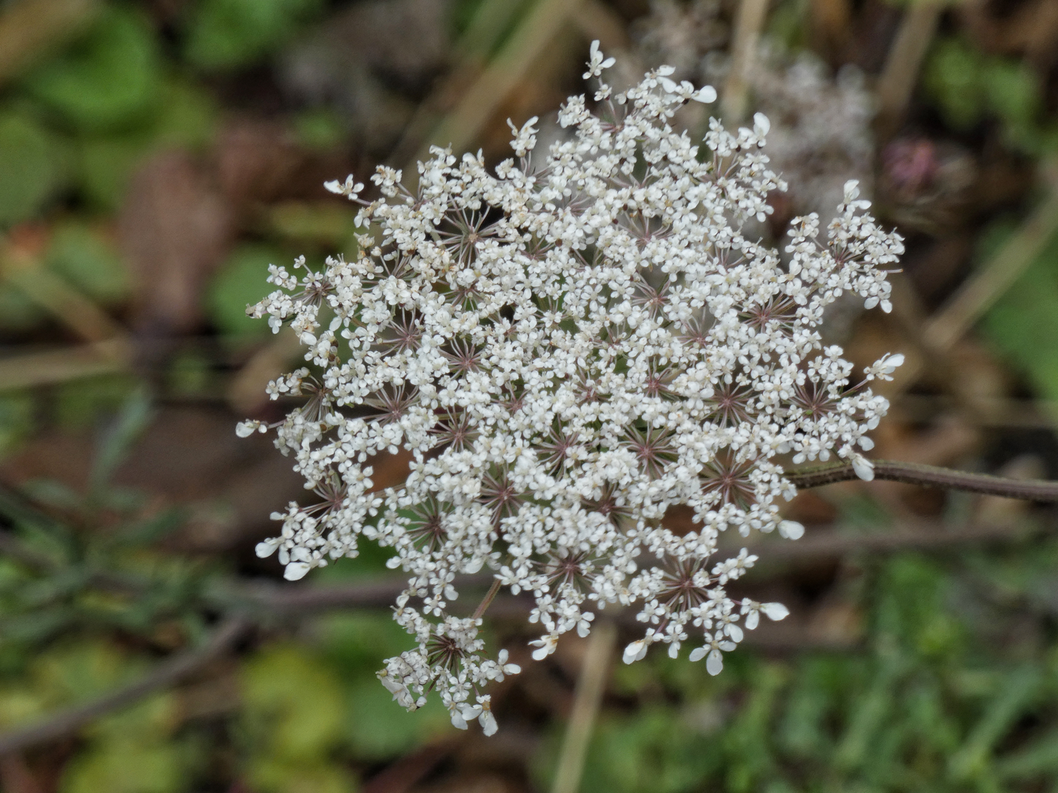 Plantas resistentes al frío, alcanzan una altura de 60 a 90 cm. Tallos y hojas de color rojo, las hojas complejas con un borde dentado. Desde el verano al otoño, presenta una floración en umbela con pequeñas flores blancas. Con una fragancia fuerte similar al apio.