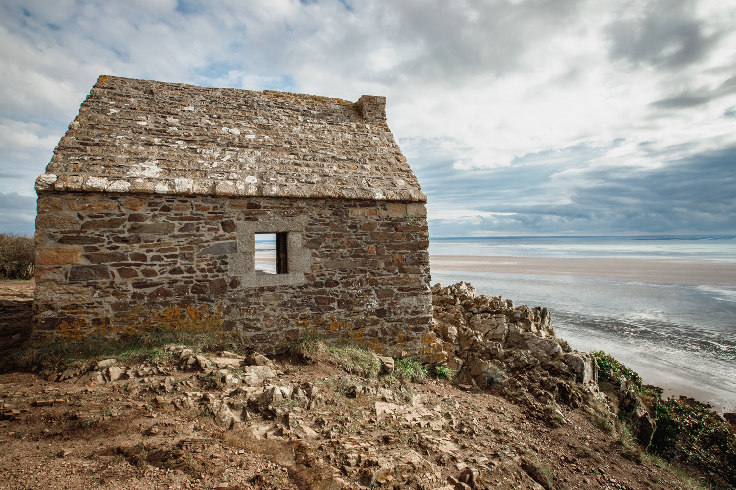 A few miles South of the village of Carolles, a stone guardhouse stands strong on the edge of the cliff. The hut belongs to a set of defences desired by Vauban in the 17th century so as to monitor the movements of enemy ships. The unobstructed view over the bay meant that any invader could be seen coming from afar. It is also an excellent location to appreciate the rare magnitude of the tides, since from the top of the cliff the bay is easily distinguishable from the open sea. The view extends over dozens of miles, offering a general view of an exceptional phenomenon.
