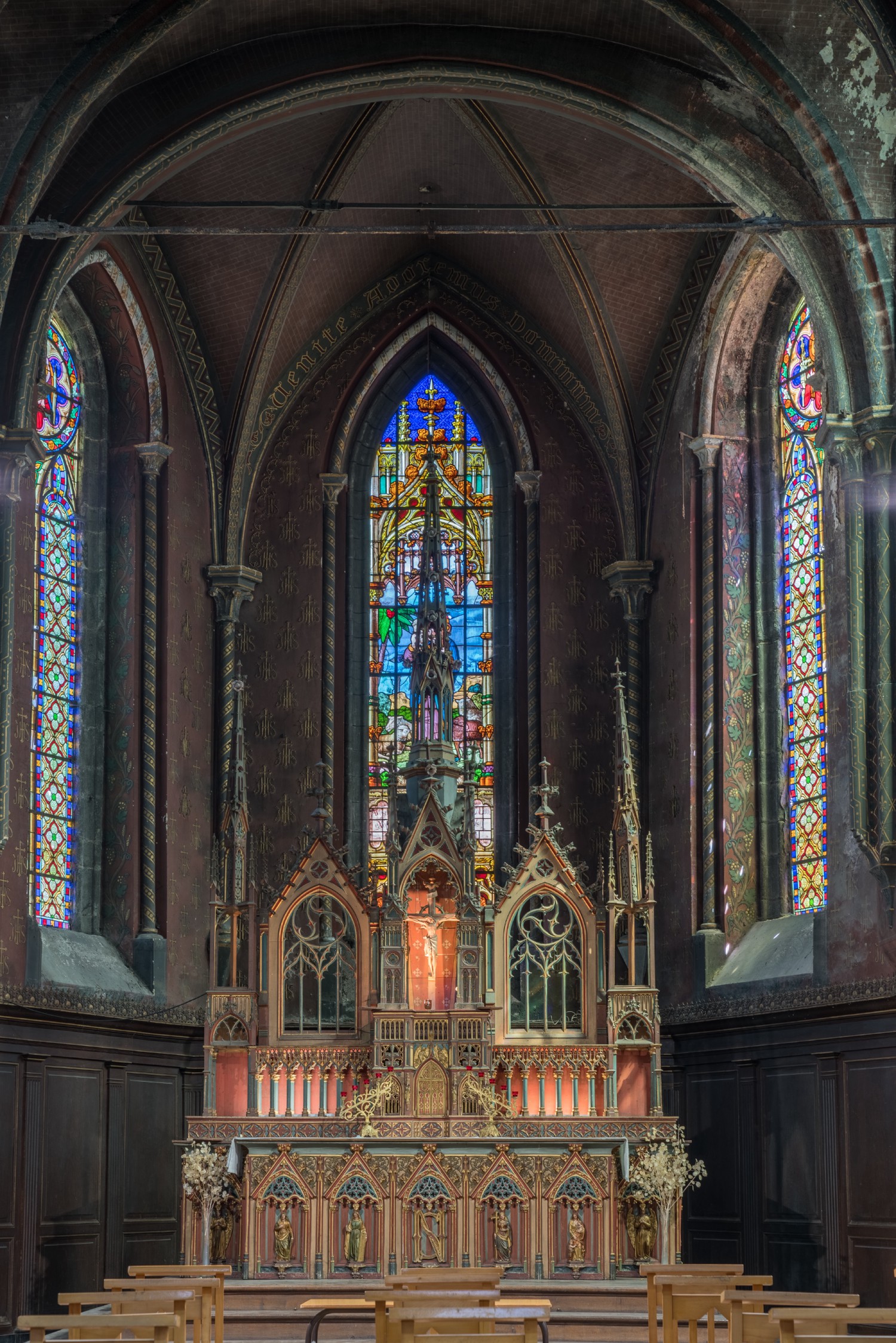 L'autel et le retable dans le choeur de la collégiale Saint-Nicolas.