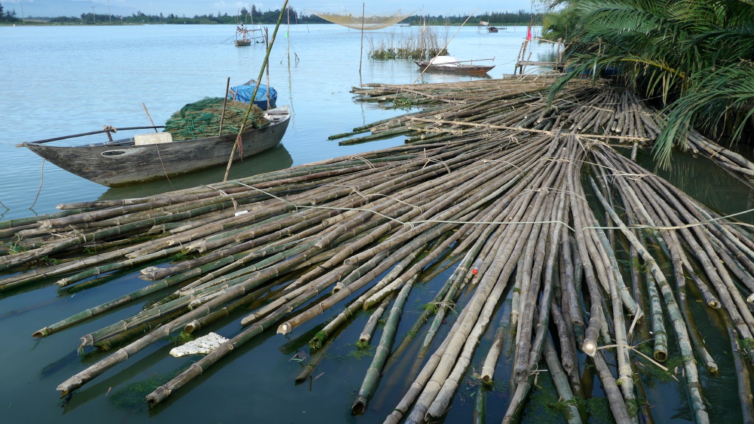 Ces bambous sont en attente d’être utilisés pour la construction dans la rivière qui traverse Hoi An.