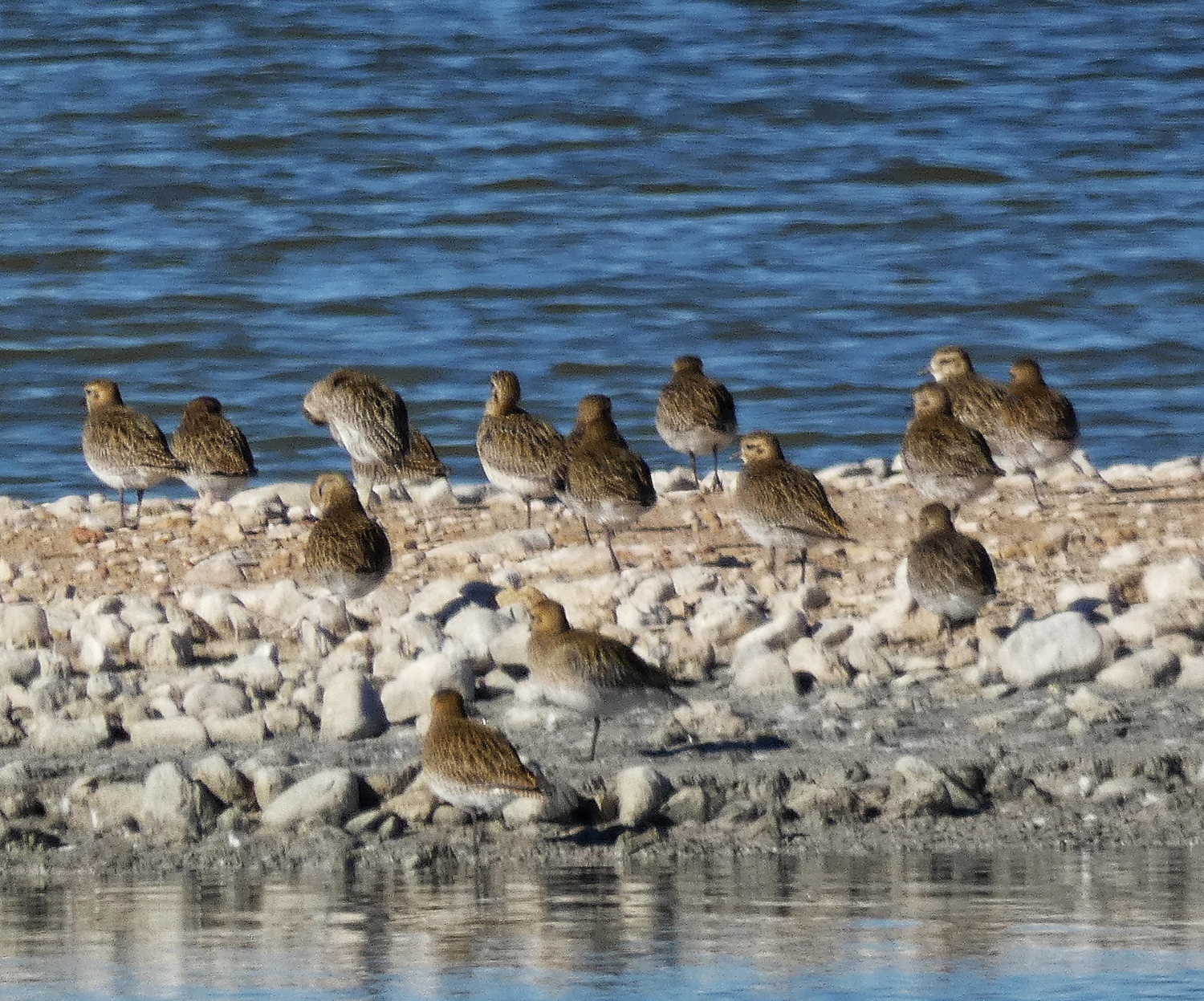 Bandada de chorlitos dorados europeos (Pluvialis apricaria) en las Salinas de Santa Pola.