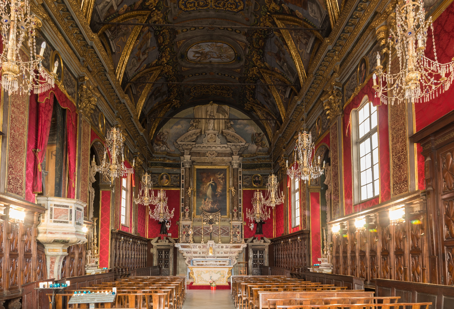La nef et le choeur de l'oratoire de la confrérie de l'Immaculée Conception.
