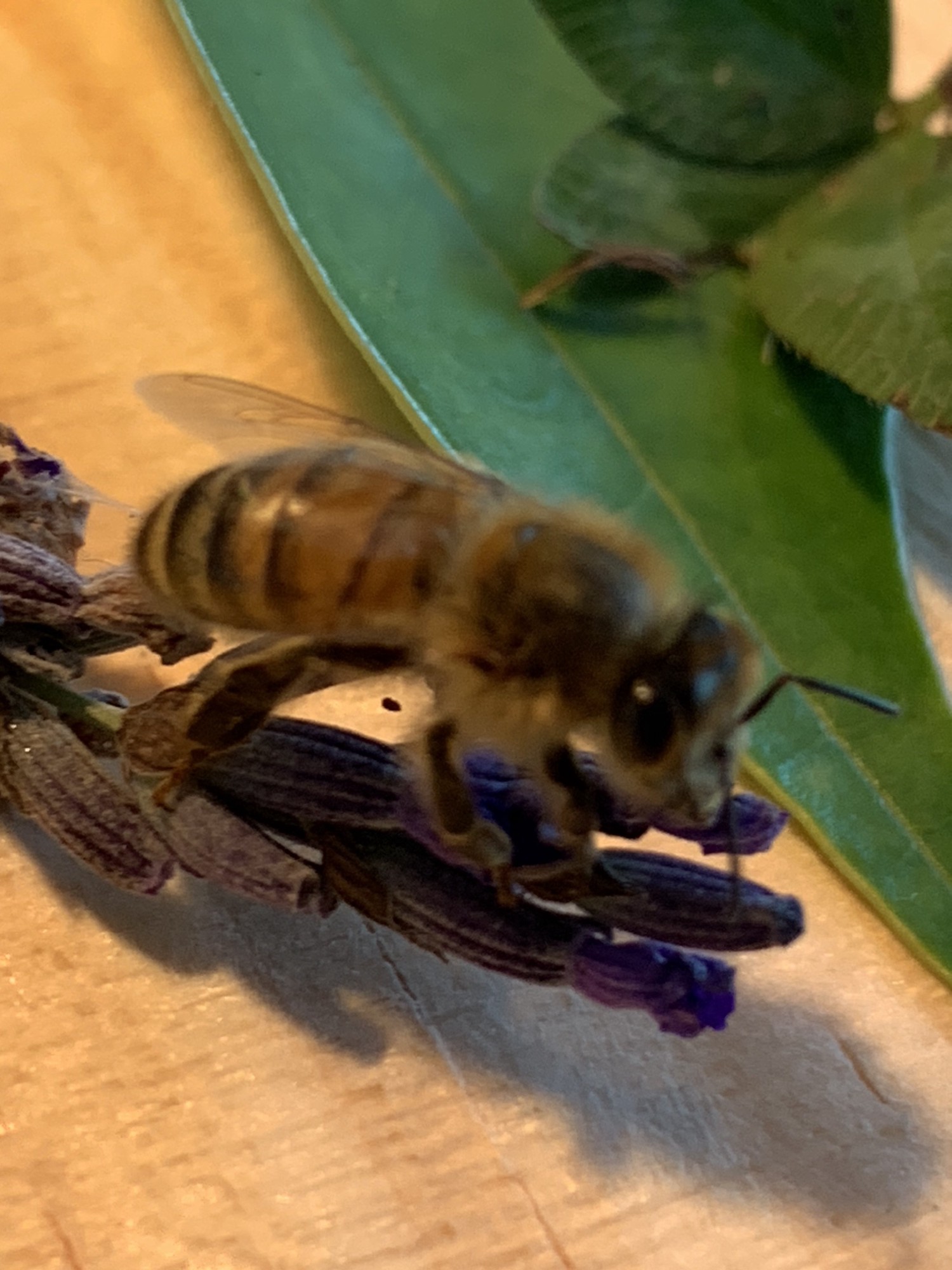 Handicap bee rescued. It lost one of its wings, I took care of it, moved it from one flower to another, and I provided it a shelter for the night.