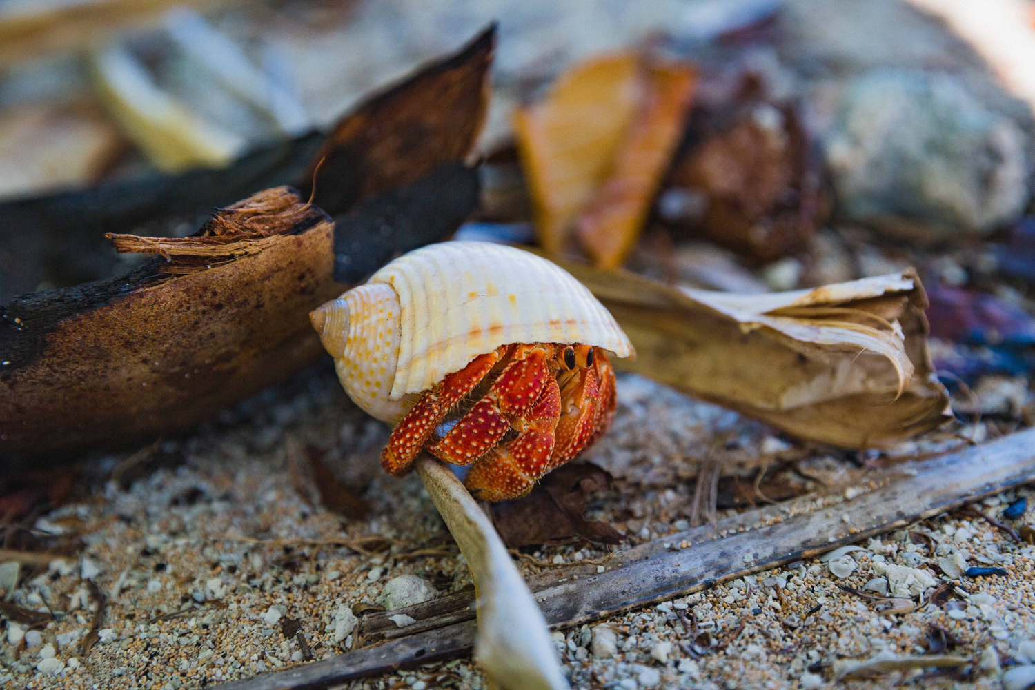 Le bernard l’hermite est un sympathique crustacé qui change de carapace plusieurs fois dans sa vie, à mesure de sa croissance. Il possèdent une pince droite beaucoup plus développée que la gauche. Ce crustacé constitue (une fois qu’on a brisé sa coquille) un excellent appât naturel pour pêcher toutes sortes de poissons.