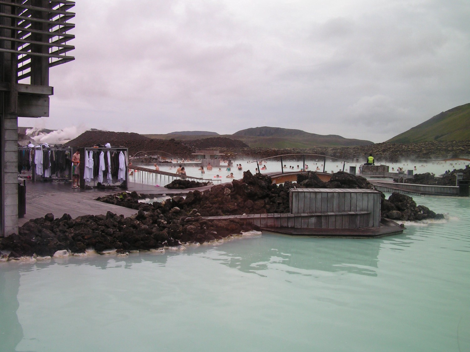 Cette station thermale est alimentée par l'usine géothermique de Svartsengi.Son eau à 38° est composée à 70% d'eau de mer et 30% d'eau douce.