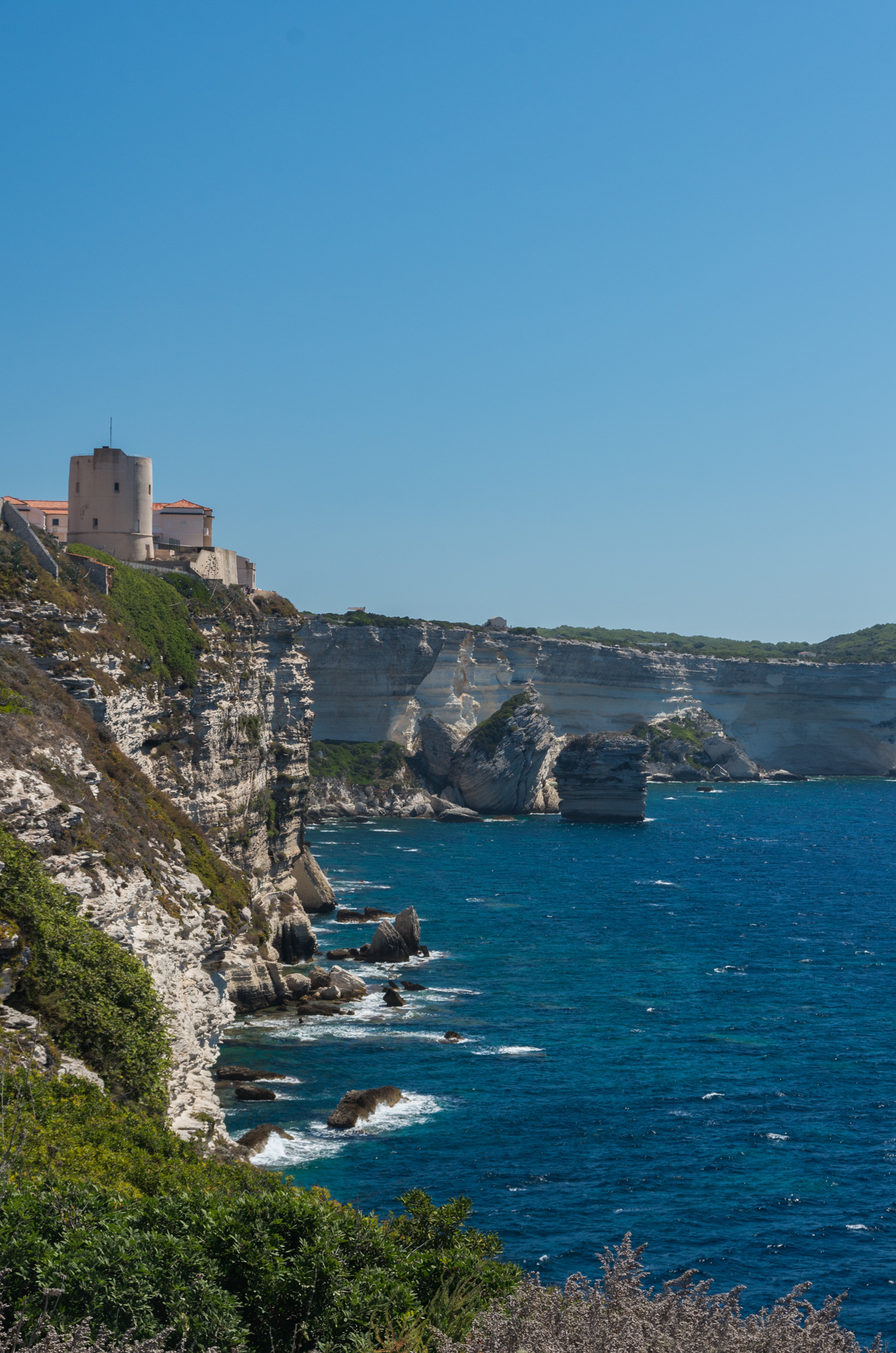 Les falaises de calcaire et le Torrione (U Turiun, la grande tour) reconstruite dans les années 80, à partir de plans anciens et de cartes postales.