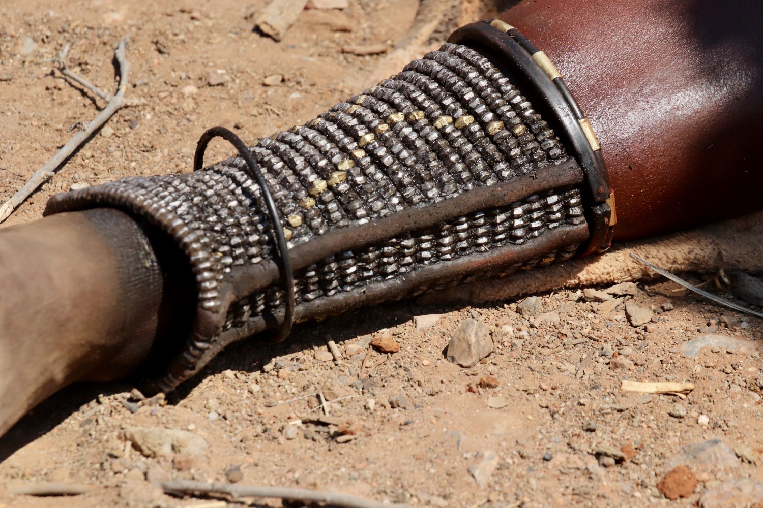 Las piernas las llevan rematadas con aros metálicos, el numero de ellos indica la posición social y el estado; si es soltera, madre o viuda. También llevan unas marcas o tiras verticales en que se sabe cuantos partos ha tenido. Igualmente tiene una función protectora, ya que esa parte de la pierna queda protegida , en cierta forma, ante posibles picaduras de algunos animales (serpientes y escorpiones, sobre todo)