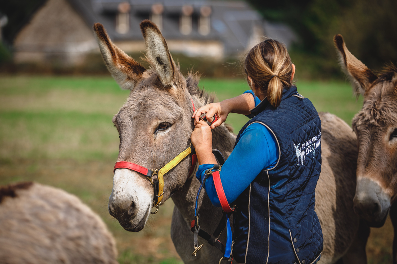 Perhaps influenced by the novels of the Countess of Segur, Brigitte Pieau has always had a passion for the Cotentin donkeys (Equus asinus). Since 2008, she has been breeding these animals in the Manche, first in Beauchamps, then for the last three years in Carolles, near Mont-Saint-Michel. She has been working to promote the breed, with the greatest of respect for the animal's welfare. Her 19 donkeys dispose of 11 hectares of pasture, and the females are only bred every two years, in order to give them time to rest between pregnancies (which last from 12 to 14 months).