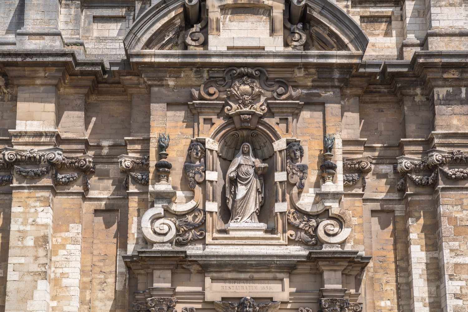 Détail de la façade de l'église Saint-Jean-Baptiste-au-Béguinage.