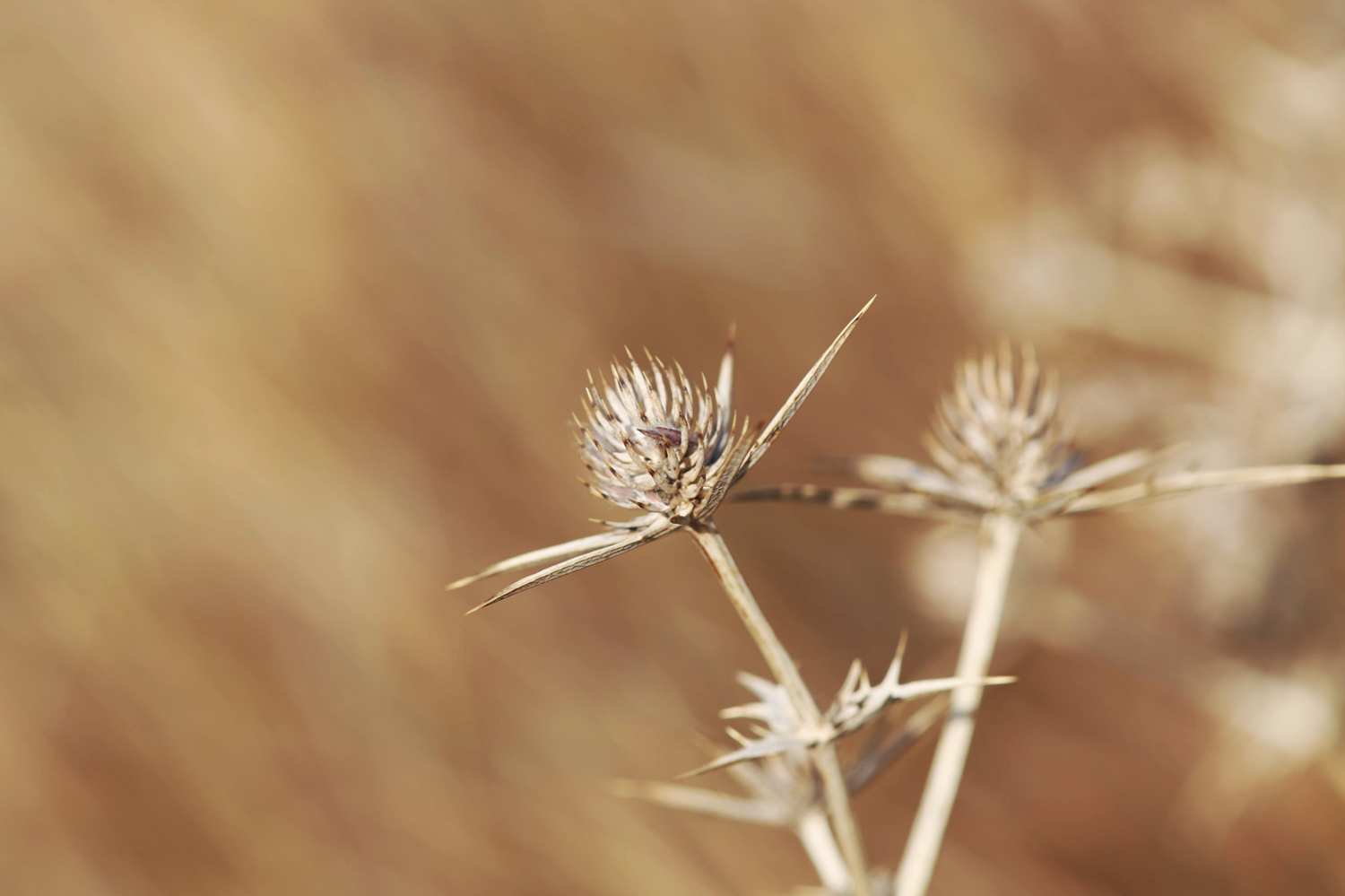 Es una planta espinosa de tallo erecto y muy ramificado que puede crecer hasta unos 70 cm de altura, no obstante, sus raíces son muy largas y pueden llegar a medir unos 5 m. Sus hojas están cubiertas de espinas y divididas en lóbulos. Florece desde fines de primavera (mayo en el Hemisferio Norte) hasta inicios de otoño (septiembre), dependiendo del inicio y de la longitud de esta etapa del clima y la latitud. Cuando se seca puede usarse como adorno.