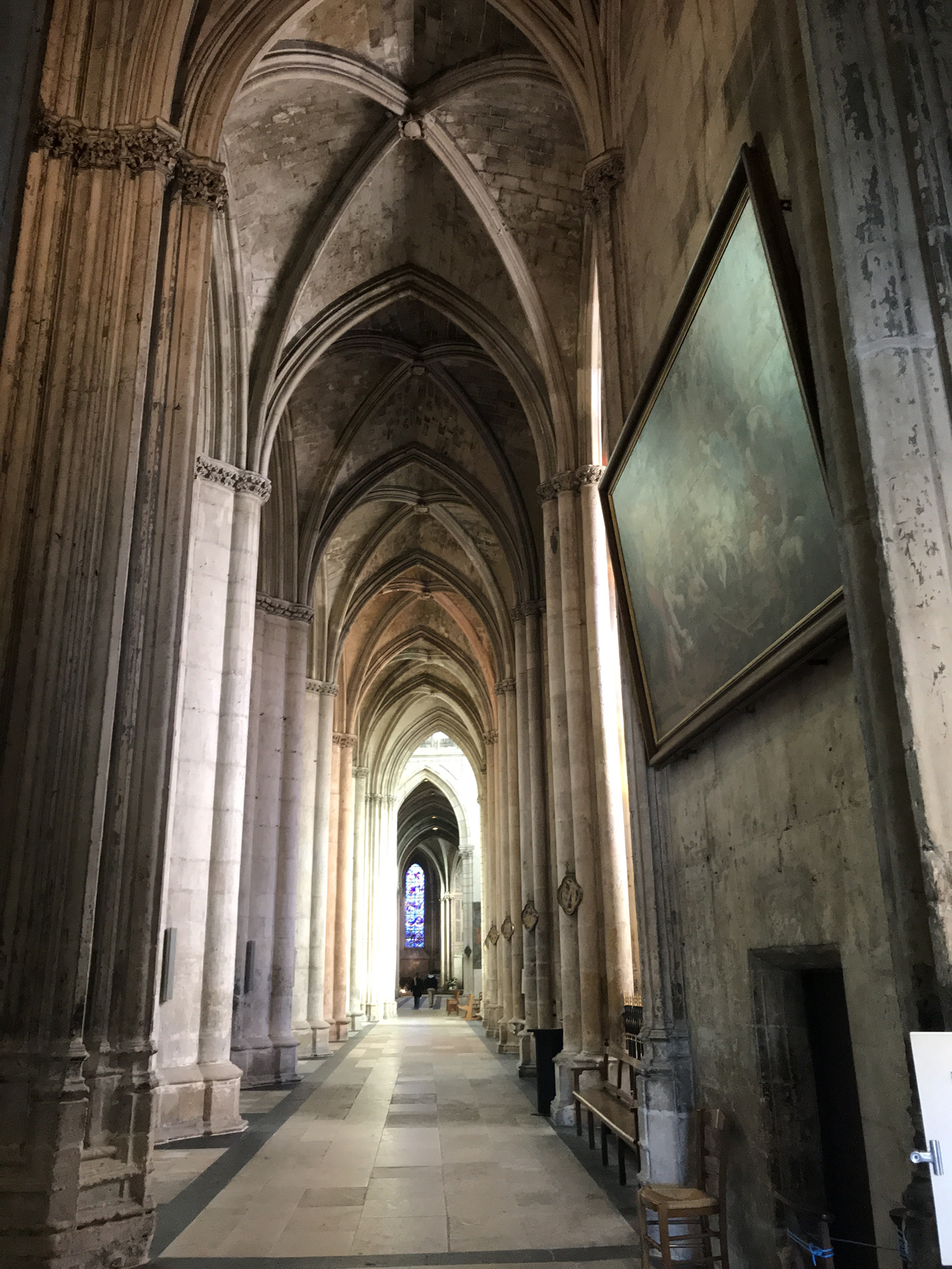 En architecture des cathédrales la nef est composée du vaisseau (central) et des collatéraux ouest et est.
