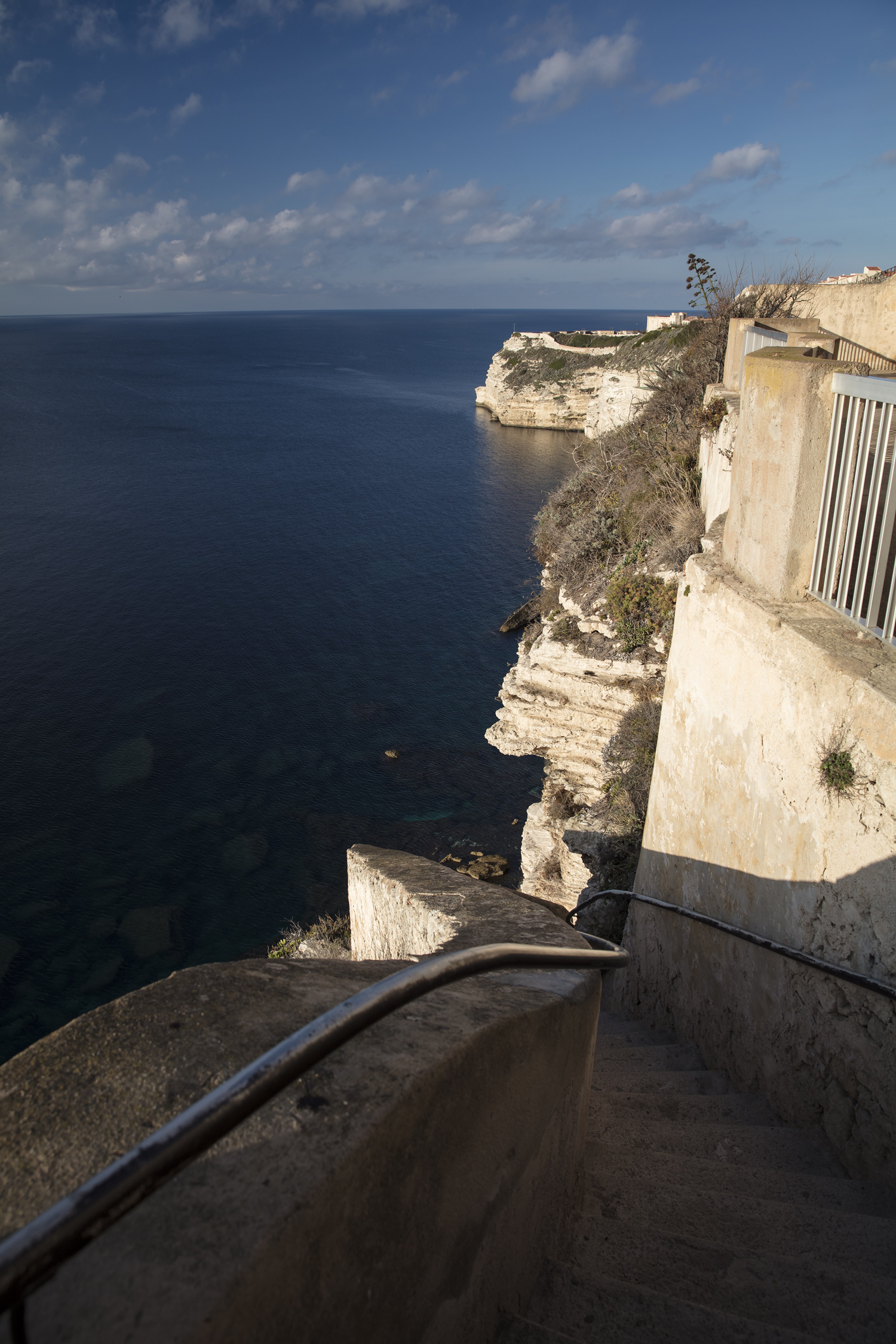 The most famous staircase of Bonifacio, and perhaps of Corsica, is the King of Aragon's stairs, carved steeply in the cliff. Its 187 steps join the sea 213ft (65m) below. It was probably carved by the inhabitants of the city to get water supplies from the spring flowing at its base after two Spanish attempts of siege.