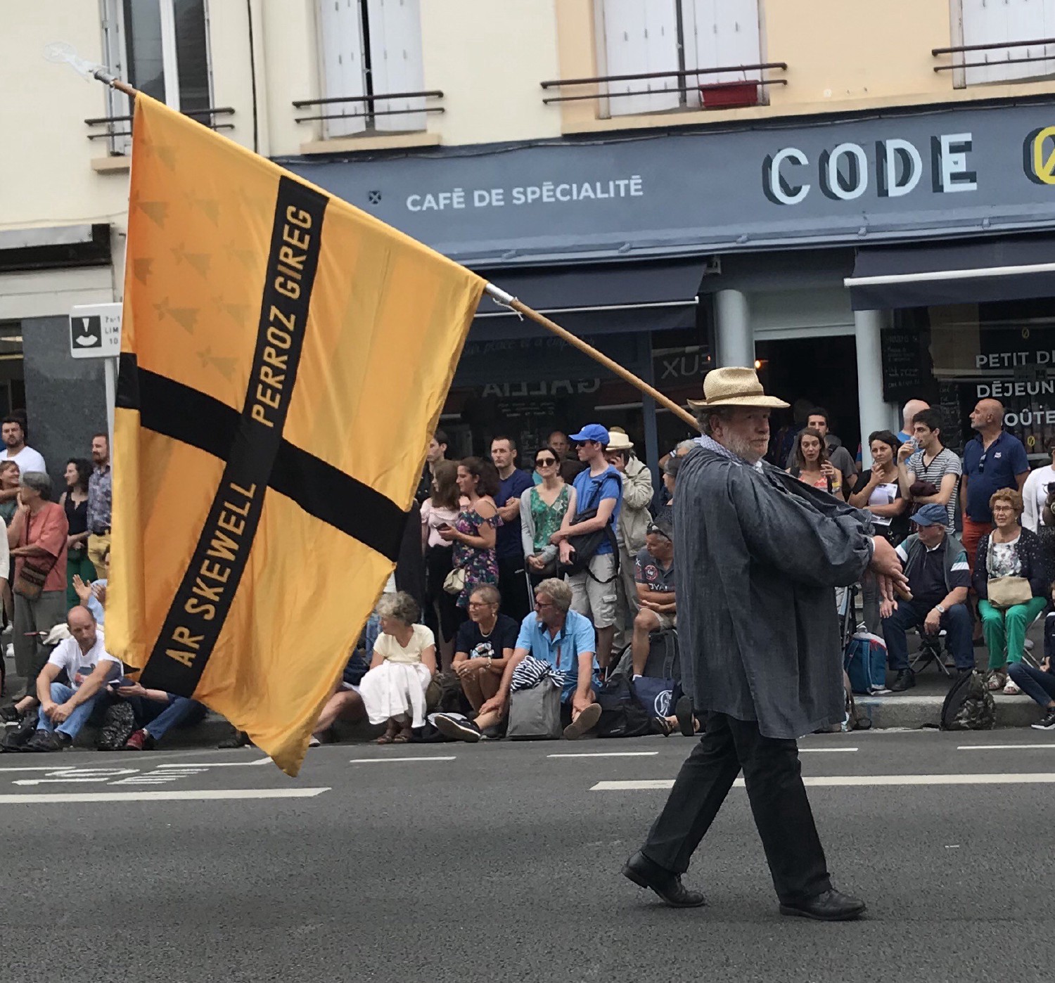 Porte drapeau du cercle celtique lors du Festival Interceltique de Lorient. Le cercle celtique de Perros Guirrec est composé de danseurs et de musiciens