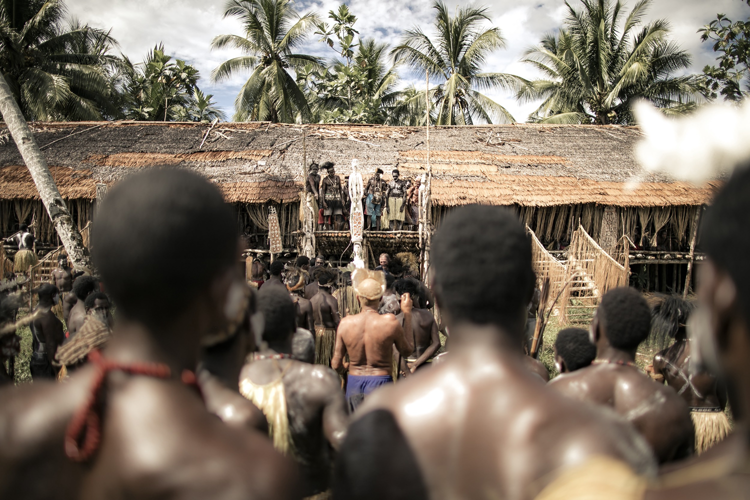 Here, a ceremony for the presentation of a new Bisj, a totem. Asmats are widely known as wood carvers. The Bisj is a totem and a way of communicating with their ancestor's spirits. The wow ipits - the sculptors, meet every day in the longhouse to work on the wood. Each incision is followed by a pray.