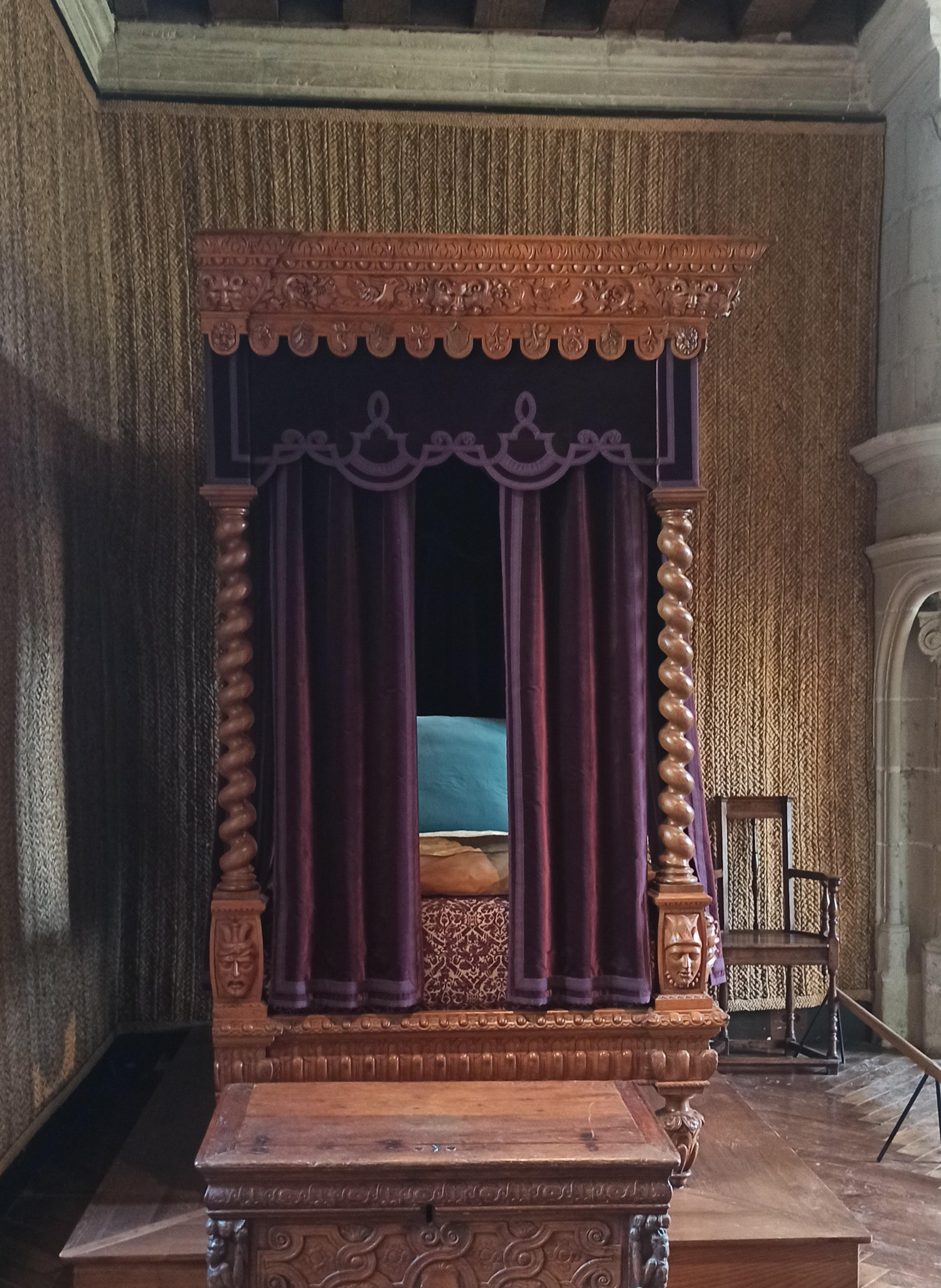 La chambre de Philippe Lesbahy, l'épouse de Gilles Berthelot, a été restituée selon des dispositifs connus en France à la Renaissance.