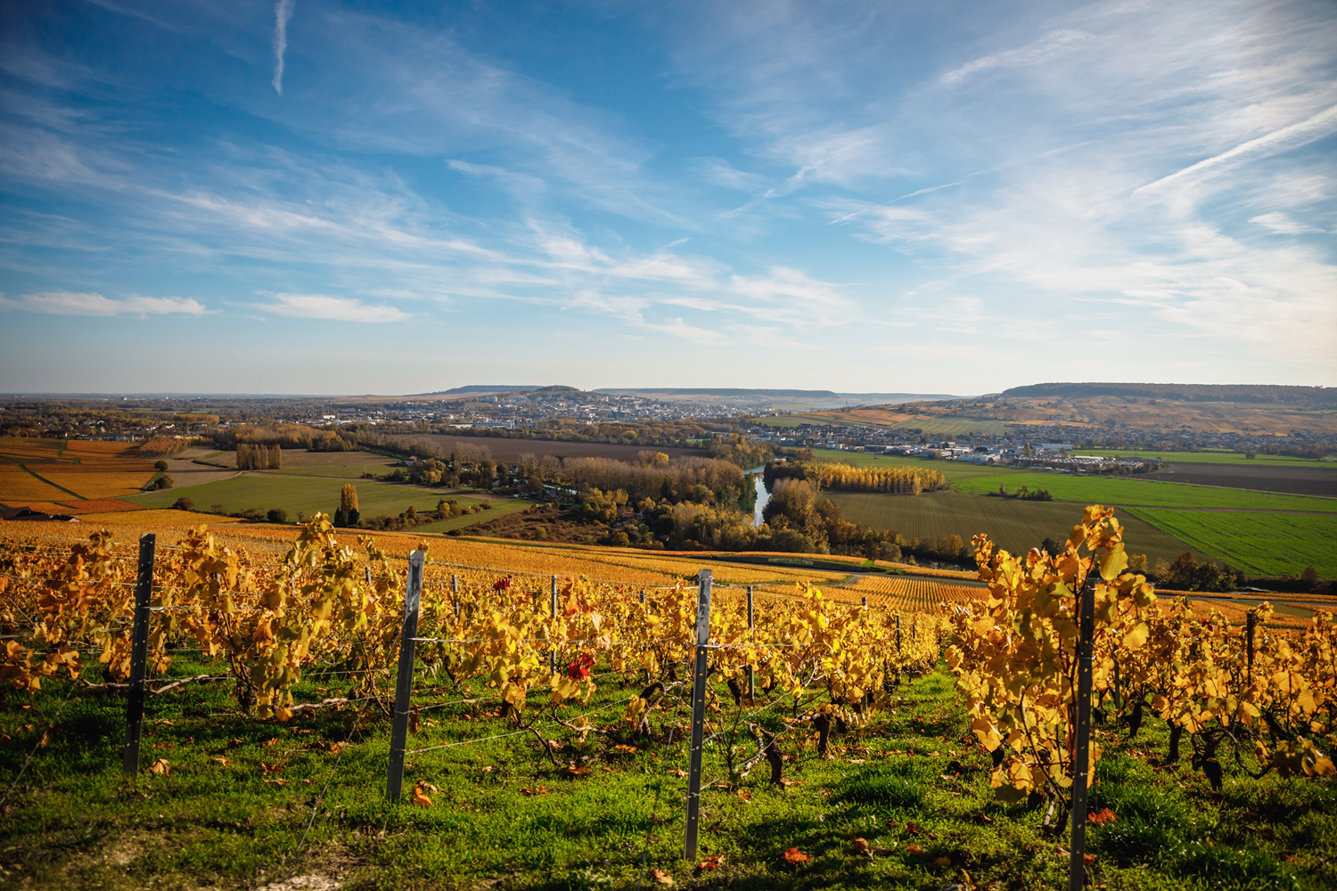 Although seven grape varieties can be used to make champagne, the Chardonnay, Pinot Meunier and Pinot Noir varieties account for more than 98% of the production. Pinot Noir is the king grape of the Montagne de Reims (Reims Mountain) champagnes: it gives body to the wine and aromas of red fruits. The cool, chalky soils suit it well. The wines of this terroir are distinguished by a pronounced structure. A Champagne can be a “blanc de blancs” if it is made from Chardonnay and “blanc de noirs” if it is made from Pinot Noir or Pinot Meunier.