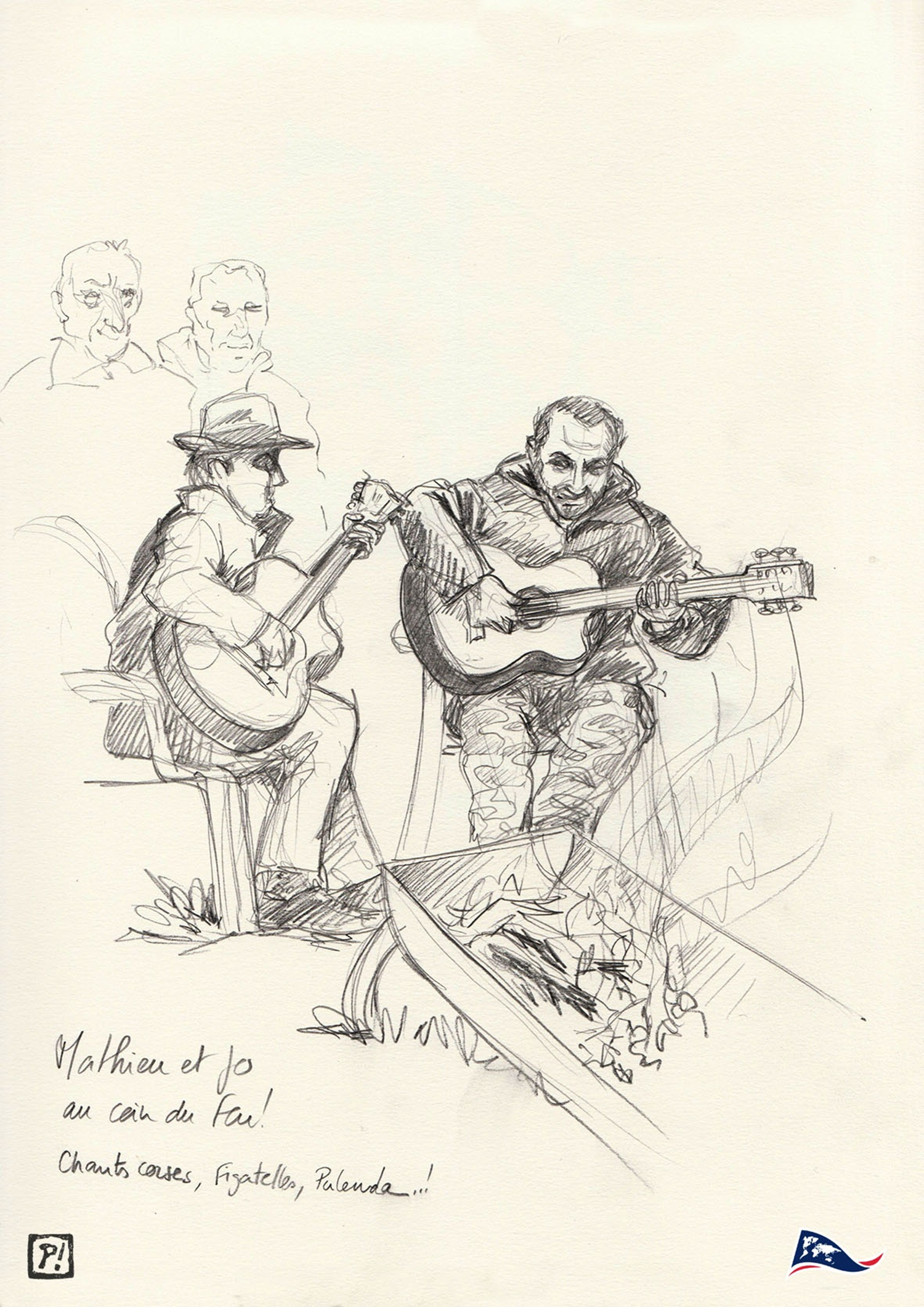 Mathieu et Jo pour un petit récital de chants corse au coin du feu. Un grand moment de fraternité.