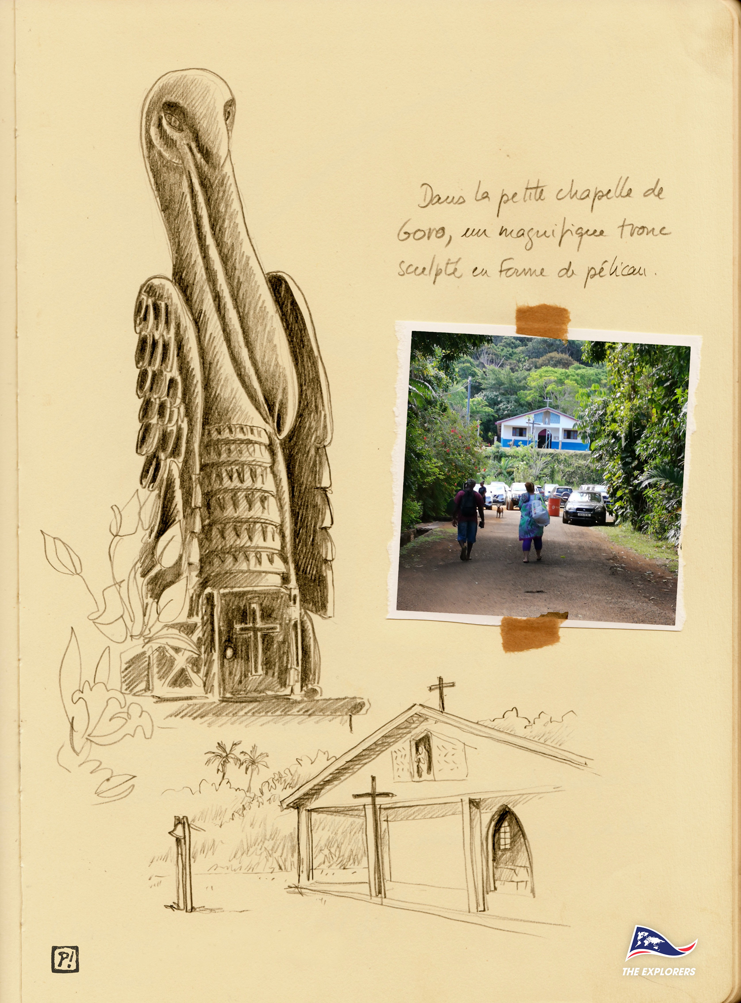 Dans la chapelle de Goro, un magnifique tronc sculpté en forme de pélican.
