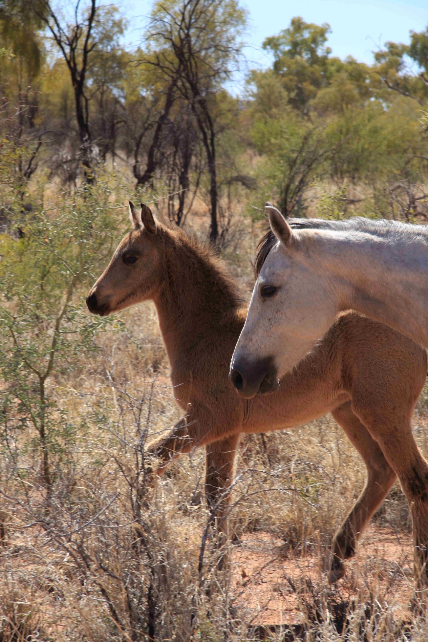 Appelés Brumby par les Australien, ces chevaux ne sont pas originaires du pays. Ce sont des animaux échappés ou perdus lors des permiéres colonisations européennes.Les premiers chevaux viennent d'Afrique du sud.