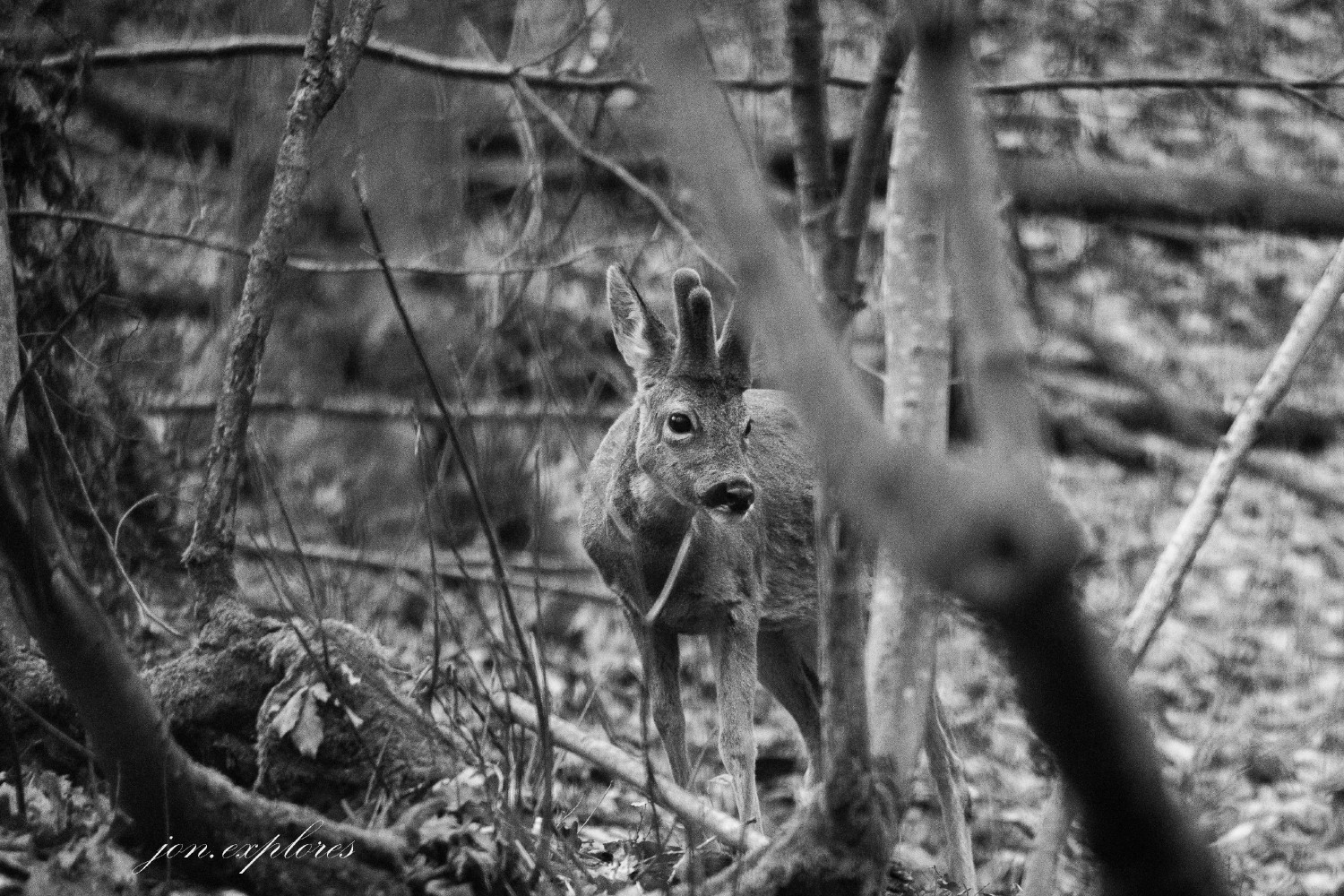 Se Dissimuler dans la forêt en plein hiver n’est pas chose facile. Néanmoins mon camouflage sera suffisant pour que se brocard s’approche paisiblement. À environ 5 mètres de mon affût il s arrête pour se nourrir. L’émotion est grande. Face à une si belle proximité avec la nature sauvage et dans la plus grande discrétion, je réalise quelques photos. Derrière lui suivront deux femelles et un petit. Sans remarquer ma présence ils disparaîtront à travers les arbres.